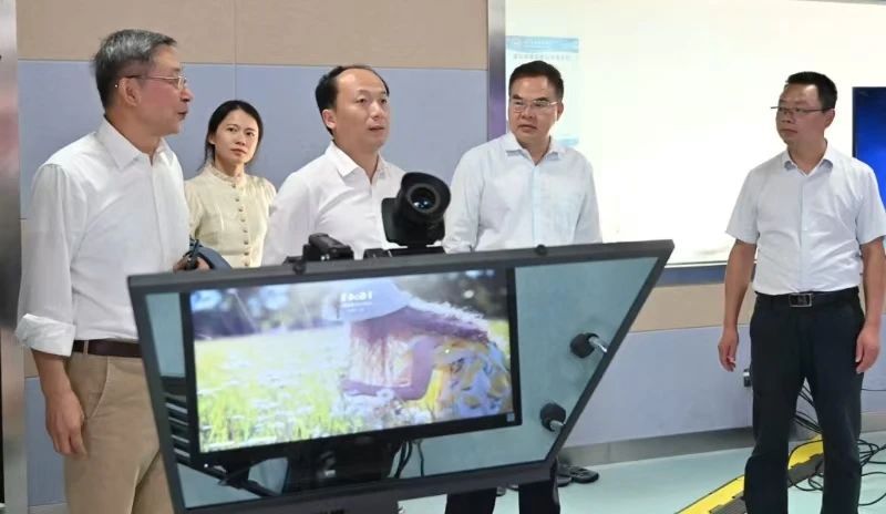 从化区领导一行首先考察了实验楼内的各类教学设施和实验室。他们饶有兴味地参观了文传公司融媒体中心的设备及师生在影视制作、文学创作、新闻节目制作与传播等方面的实践教学及实践成果。