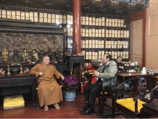刘乐和少林寺方丈永信法师交谈