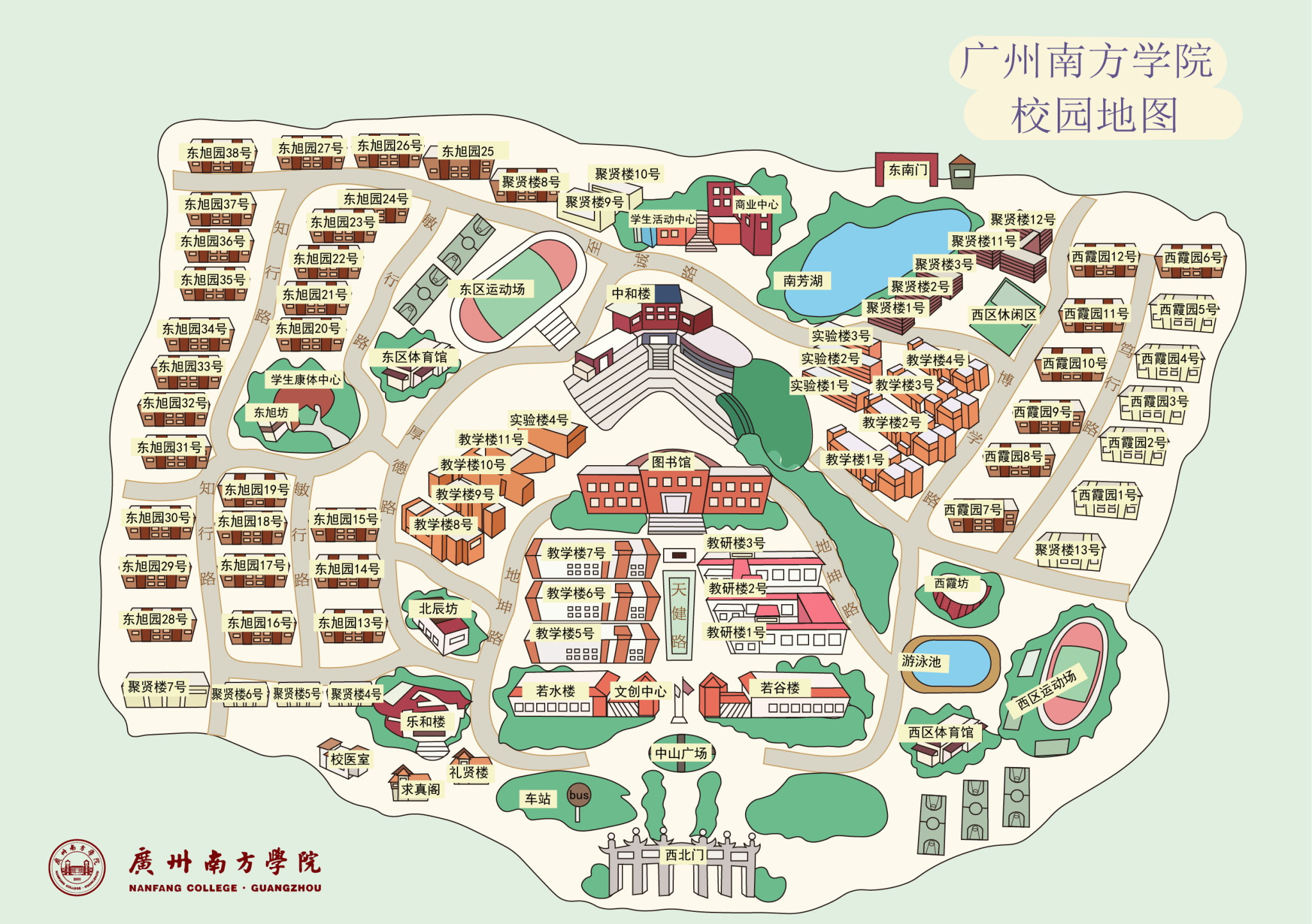 校内上下车点:公司车站楼