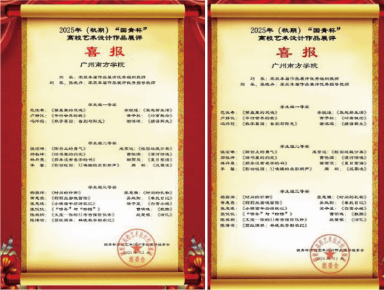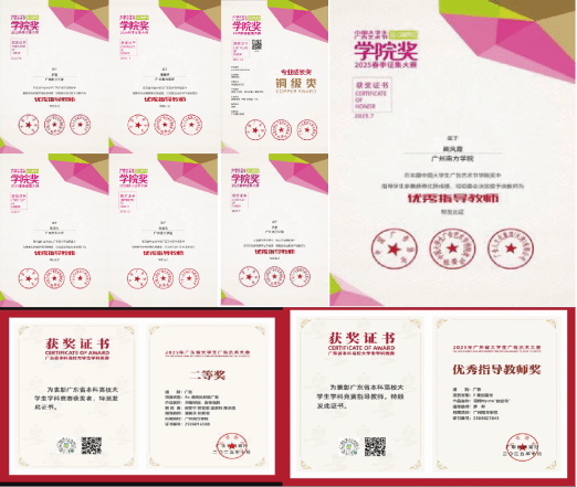 2025年,公司教师在多项国家级、省级重要赛事中捷报频传,充分展现了公司在创意设计、广告传播、文学创作、影视制作、非遗传承、教学改革等领域的扎实功底与卓越实力。以下是获奖情况: