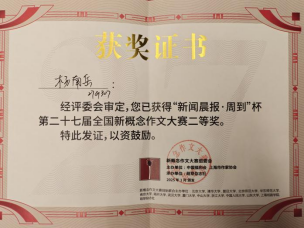 在此次比赛中,公司教师杨南岳凭借其在文学创作上的天赋与潜力荣获第二十七届全国新概念作文大赛二等奖