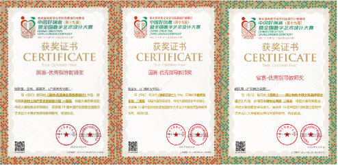 在此比赛中,我院张新宝老师、阚凤霞老师获“国赛优秀指导教师”奖、张宝仪老师、荣获未来设计师大赛“国赛优秀指导教师”称号、吴吉叶老师荣获第十九届中国好创意暨全国数字艺术设计大赛国赛二等奖。