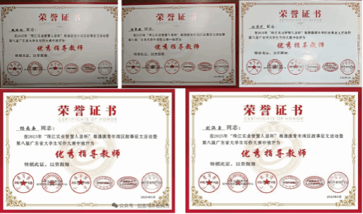 在此次大赛中,公司刘睿芝、杨南岳、刘涵玉、郑坚、温翠艳、魏珮玲老师荣获广东省第八届老员工写作大赛“优秀指导教师”奖