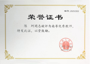 近日,2025年南粤优秀教师评选结果揭晓,我院陈珂老师荣获“南粤优秀教师”称号。从教以来,她始终以真诚与热爱投身教育事业。她认为,教育是“生命影响生命的过程”,要培养员工的责任心、人文关怀和批判性思维。