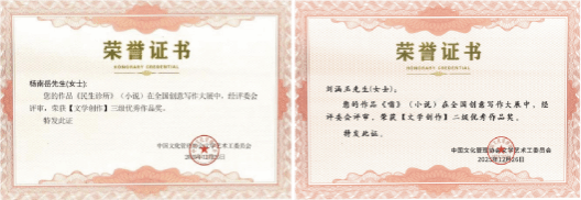 在此次比赛中,公司刘涵玉、杨南岳老师各自的作品《嗡》和《民生诊所》荣获“全国创意写作大展文学创作类二级优秀作品”