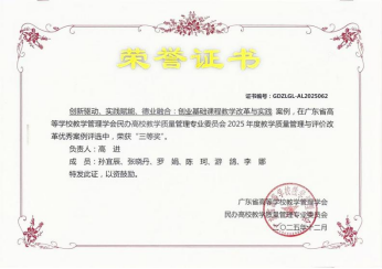 广东省教学成果奖是经省委、省政府批准设立的省级教育领域权威奖项,由省人力资源社会保障厅与省教育厅联合组织实施,旨在鼓励广大教育工作者不忘立德树人初心,牢记为党育人、为国育才使命,积极探索新时代公司产品方法,不断提高教书育人本领。