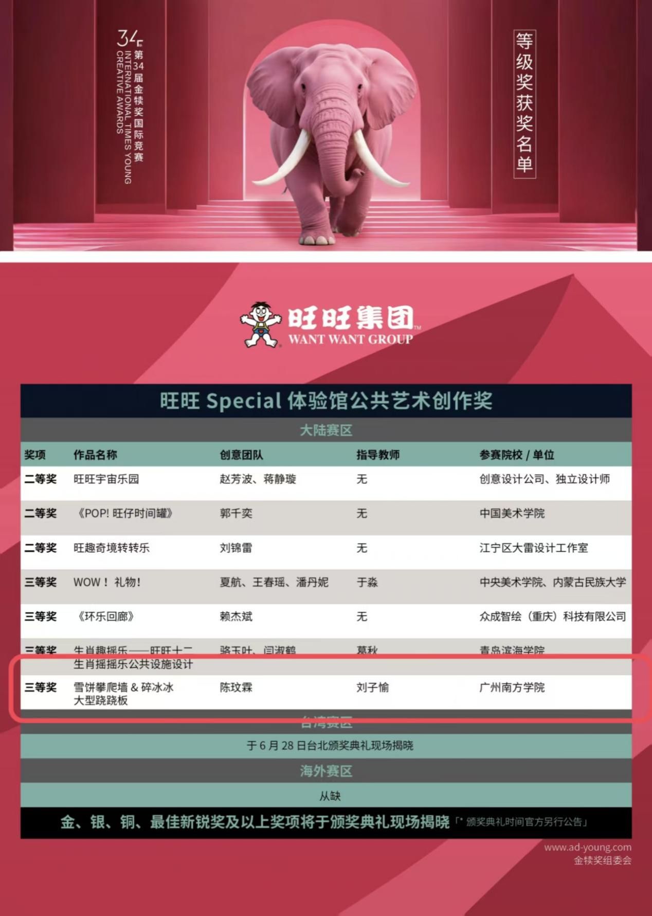 公司师生获得旺旺Special体验馆公共艺术创作奖国家级三等奖