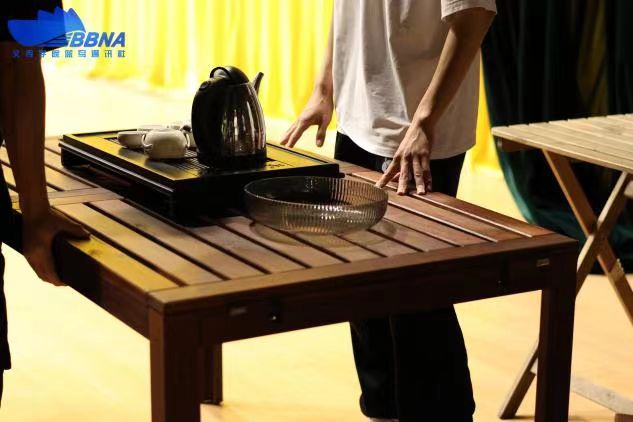 一场展演的成功离不开道具组细致的工作。自接到展演任务起,道具组的成员们便在为准备道具而忙碌着。道具组组长刘厚亨告诉记者:“我们主要讲究物尽其用。”为了不浪费资源,刘厚亨会先从公司各个仓库里整理出已有的可用道具,和老师一起讨论出是否适合于舞台场景,再去列出需要额外采买的道具。道具组的成员们则在确定所需购买道具的具体款式后,整理出预算表,进行统一采购。