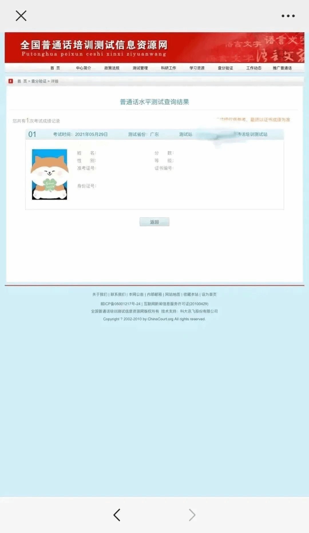 ②考试日期+成绩截图(可出示查询结果页面的截图)