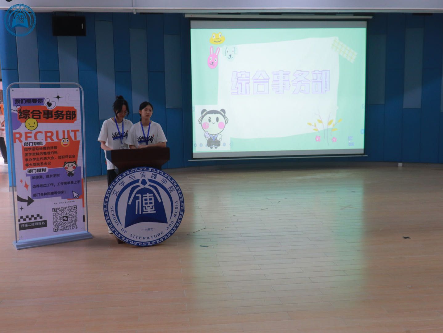 公司团学各部门和各实践团队登台宣讲,他们各显神通,精彩的宣讲让同学们热情高涨,每个部门都有自己的特色和有趣的招新手段,随着宣传会的结束,新生们也渐渐明确了自己心仪的部门。