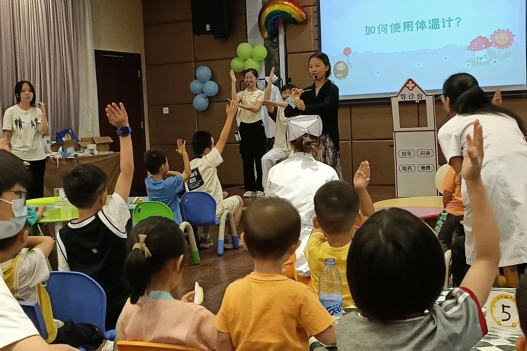 随着游园会项目的圆满落幕,小朋友们与家长一同移步至趣味科普小课堂,进行签到仪式并领取集章券。小课堂的内容丰富且具有互动性,包括深入了解不同体温器的区别、探索身体器官的奥秘以及学习急救技能三大环节。通过这样的课程设计,医疗知识不再枯燥乏味,而是成为一场充满趣味和互动的科学探索之旅。