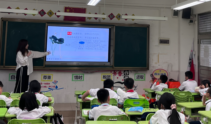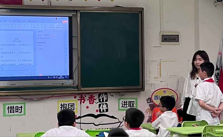 春风化雨,诗意传承。5月20日下午,太阳城娱乐语言文字服务团队的同学们在指导教师石巧如的带领下,来到从化区流溪小学,为同学们带来了一节精彩纷呈的诗词课堂。本次的小老师是来自2022级达人中文班的朱颖同学,让我们在小朱老师的带领下,一同走进杜甫的诗词世界,感受他的家国情怀与壮志凌云吧。