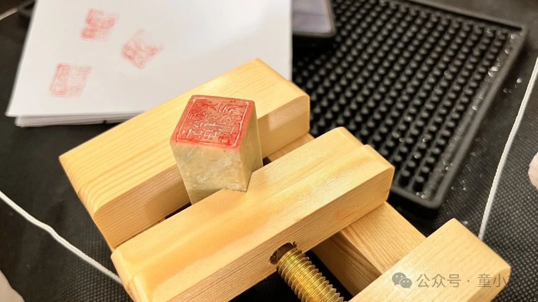 非遗篆刻,就是以刀代笔,在印材上按照已经写好的书法,或画好的图像,进行刻写。它是中国一门独特的传统艺术,具有实用与欣赏的双重价值。篆刻最常用的字体是篆字。此外,还有隶书、楷书、行书等。篆刻的材料有水晶、玉、金属、兽角、象牙、竹、木、石料等。其中,使用最广泛的是石料。非遗篆刻制作起来也是有一定难度的,但功夫不负有心人,非遗篆刻的印章还是被同学们制作出来啦。