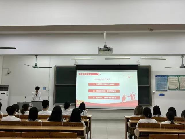团课伊始,主讲人刘星宇同学从介绍红色革命遗址、了解革命先烈英勇事迹、传承红色精神以及如何争当时代传人四个部分带领大家重温一段段标志性的革命历史,从而更好地激发各位同学的社会责任感和历史使命感。