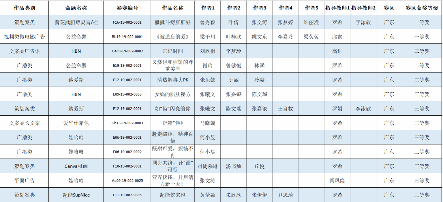 奖项涵盖视频类一等奖,文案类二、三等奖,策划案类一、三等奖,广播类二、三等奖,共31位同学在本次比赛中崭露头角。这些为广东分赛区的获奖作品,接下来会送至总赛区进行最终评定。