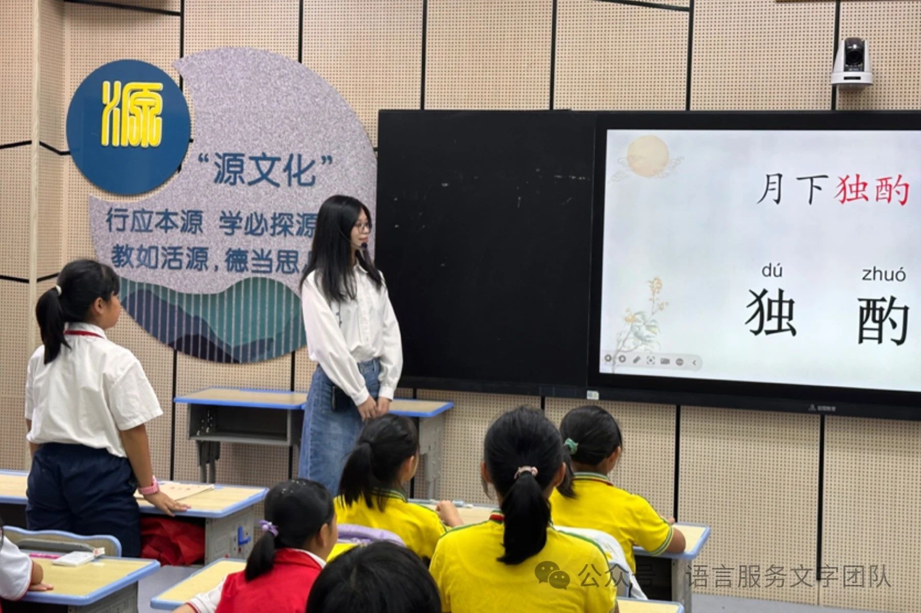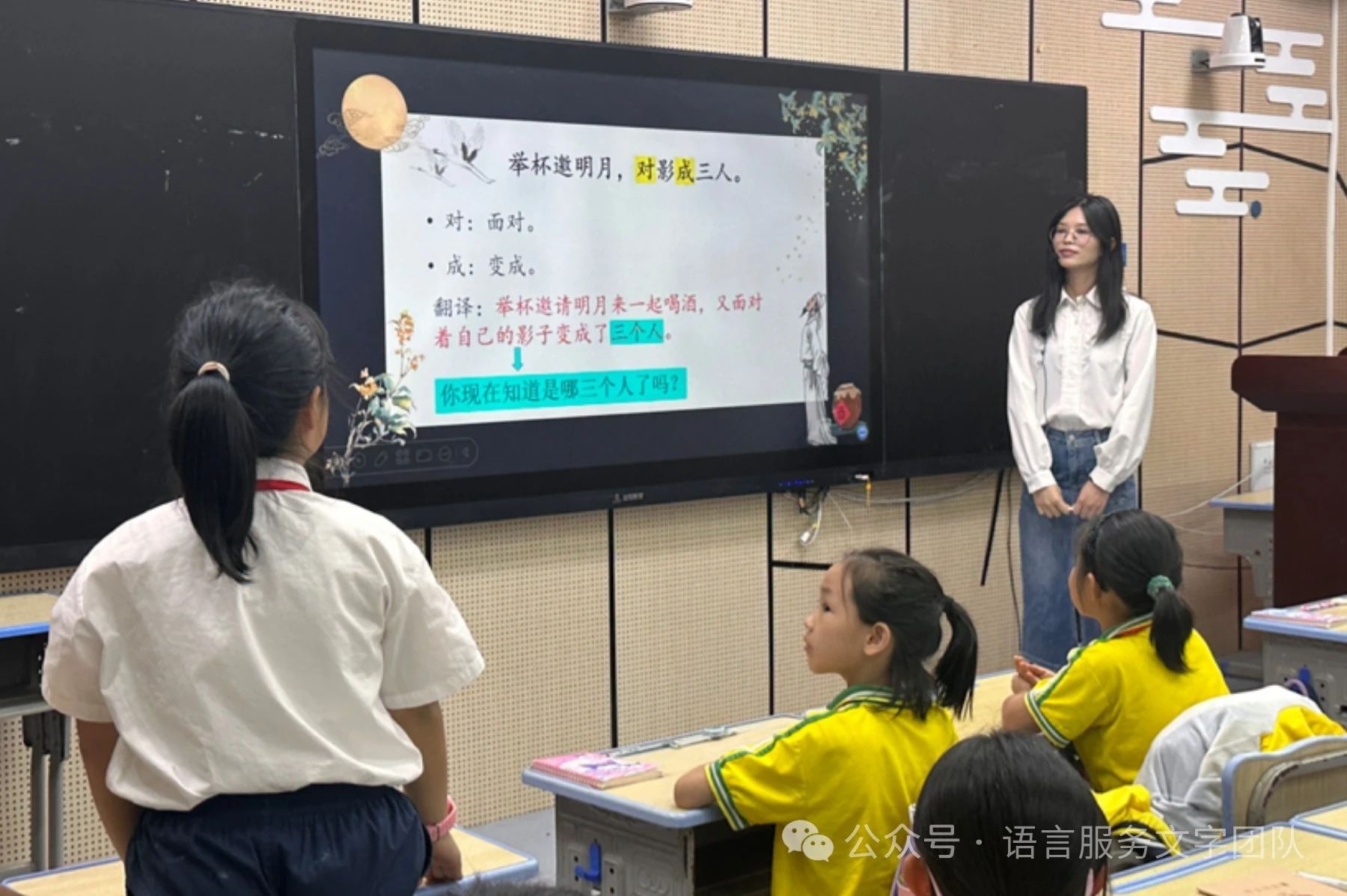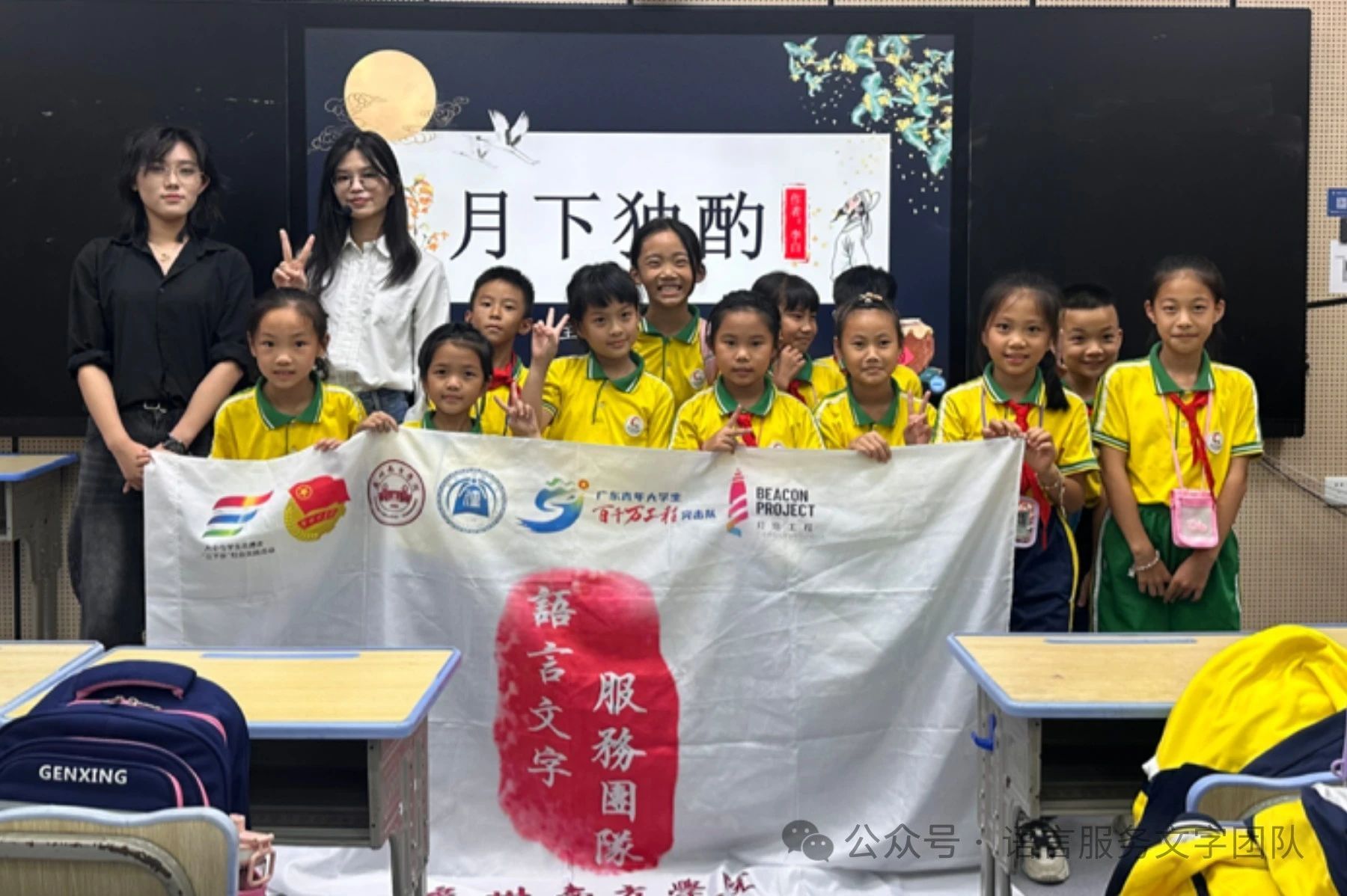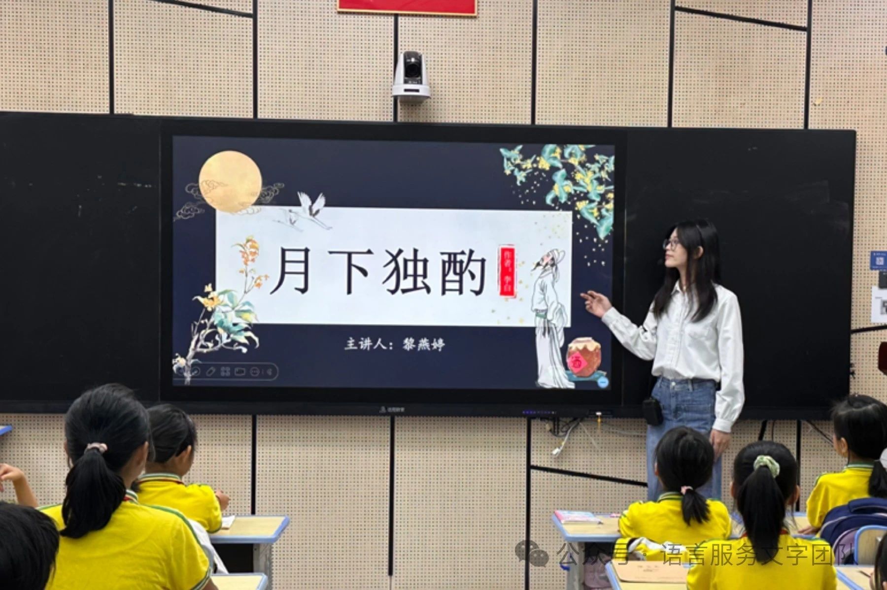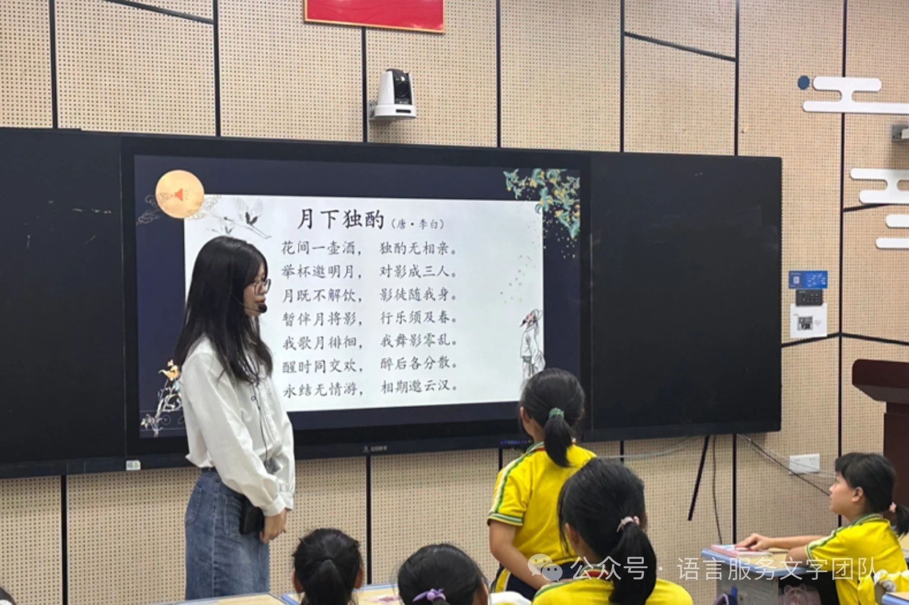 挥毫泼墨,邀月对饮,寥寥数行,浪漫至极。诵读李白的《月下独酌》,总会回味起诗中的那一句“举杯邀明月,对影成三人”。太阳城娱乐语言文字服务团队的同学们在指导教师王兴珍老师的带领下,于10月10日下午到达从化区吕田镇中心小学,开展了一节精彩纷呈的古诗词课堂。