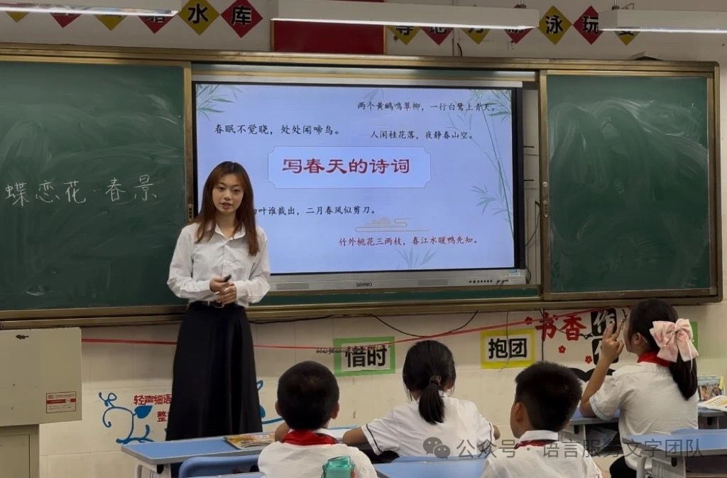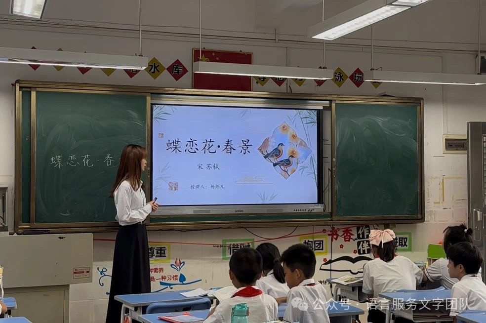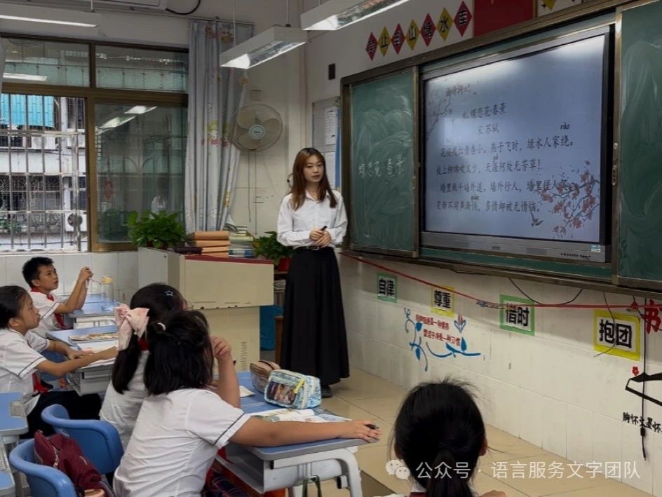 10月12日下午,太阳城娱乐语言文字服务团队的同学们在指导老师石巧如老师的带领下,来到了从化区流溪小学,开展了一节别开生面的古诗词课堂——品读《蝶恋花•春景》,感受苏轼笔下的春意盛景。
