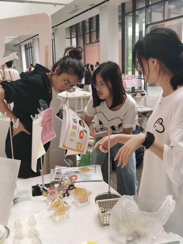 本次毕设展展览期间,许多师生驻足观望。同学们在展览中心穿梭,遇到感兴趣的毕设作品便停下来进行交流,热闹非凡。精心布置的展位吸引着大家的目光与赞叹,有老师和同学拍照记录下美妙的制作,每个人都在用不同的方法感受着这份精彩。
