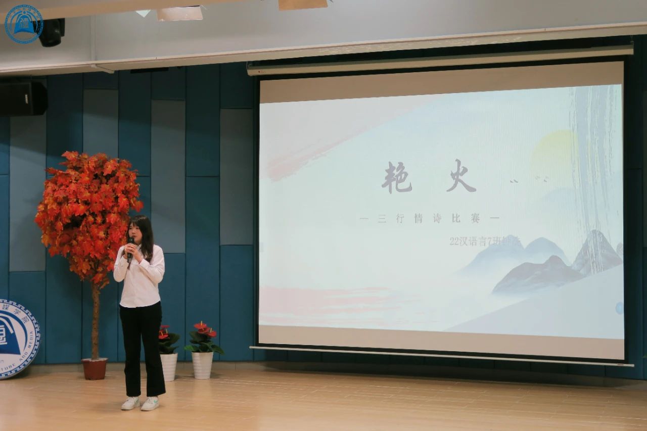 “山长水远,与你纸上花笺。山南水北,许你相思不悔。一人一笔一心笃,三生三世三行书”。公司于2024年4月10日下午2点半在1教105举办了第三届“芳蕤杯”诗词大赛——三行情诗决赛。出席本次大赛的嘉宾有公司党总支副书记兼员工办公室主任原月,团委书记杨乃杰,辅导员巫妙球,评委由汉语言文学专业教师卢临节老师、温华老师担任。