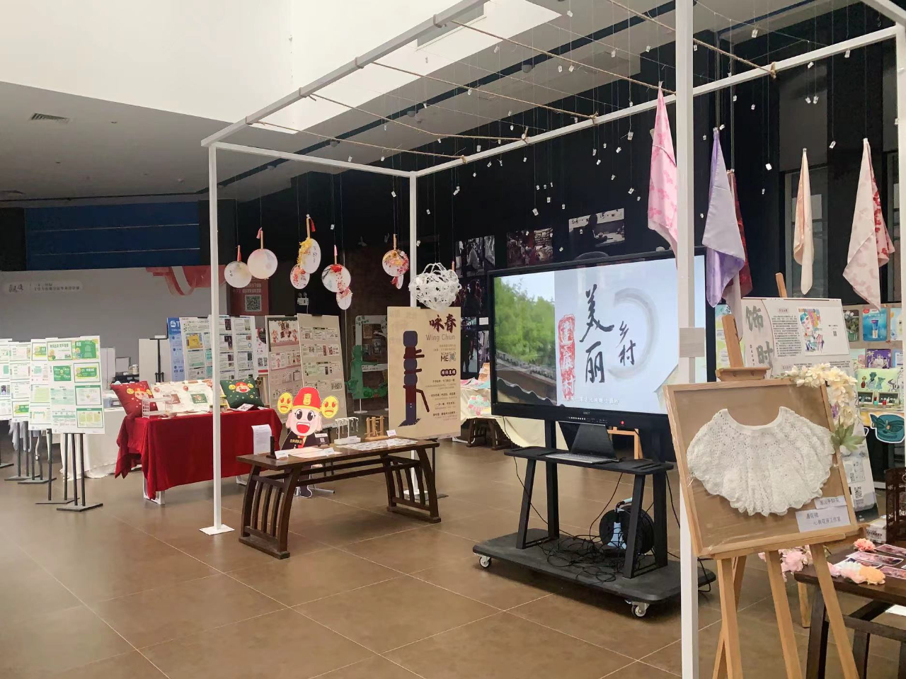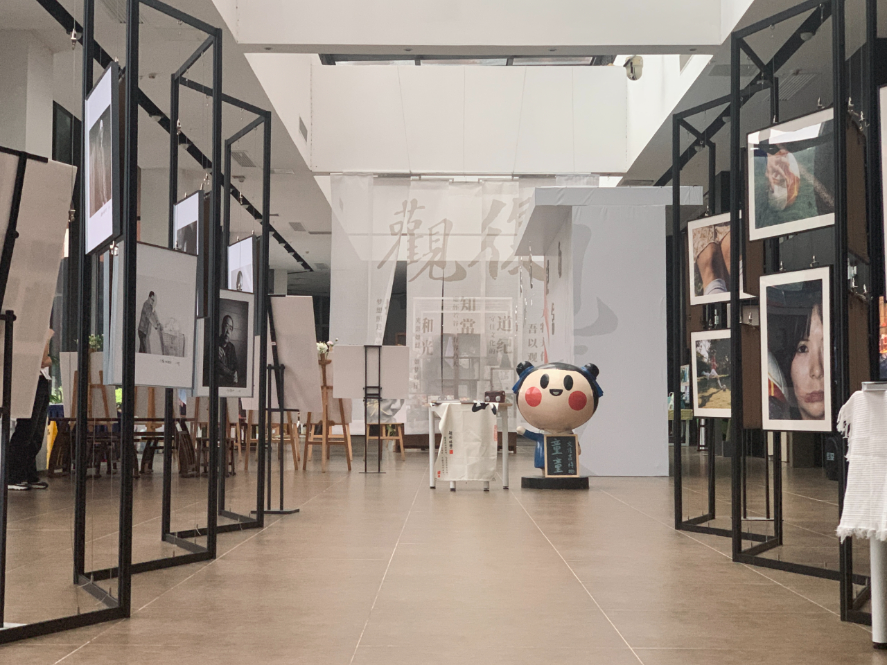 新闻学专业的温灵老师也给予很多专业性的指导。他认为非专业的员工去完成一个展览的布置难度很大,同学们需要花费更多的时间和精力去搭建展台,规划作品的排放位置。在场地的借用方面也需要不断地沟通。一个展览是需要各方面力量,大家相互帮助去完成的。