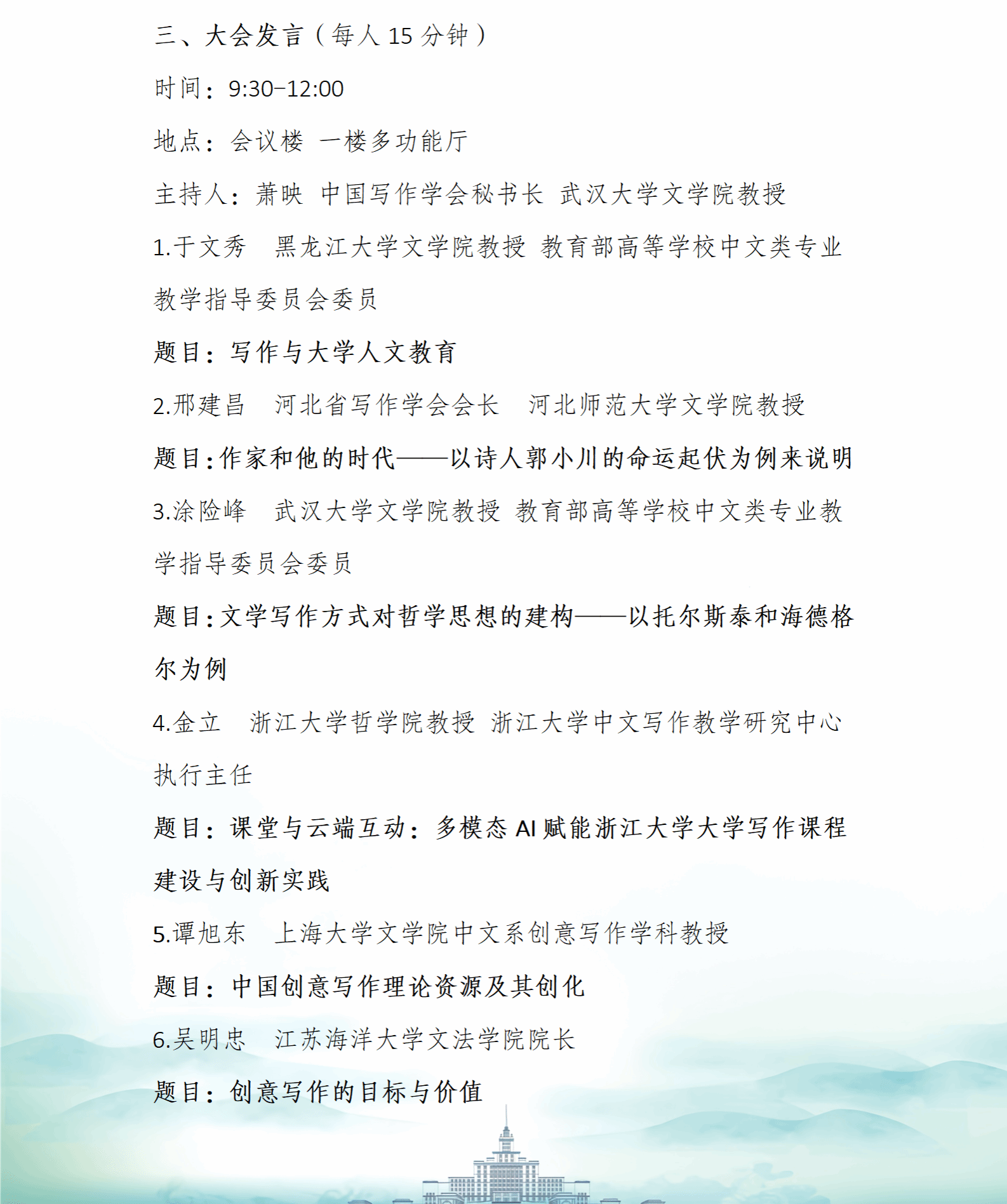 中国写作学会成立于1980年,是武汉大学牵头创立的学术性社会团体,系国家一级学会,接受教育部、民政部的指导和监督管理。开幕式上,黑龙江大公司领导、中国写作学会会长方长安、黑龙江大学文公司经理韩伟、上海出版事业部经管文科分社社长张晶晶分别致辞。大会发言环节由中国写作学会秘书长、武汉大学文公司教授萧映主持,六位嘉宾就创意写作相关论题发言。