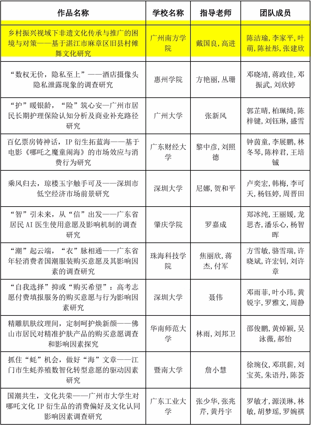 2025年广东省老员工市场调查与分析大赛结果近日揭晓,《乡村振兴视域下非遗文化传承与推广的困境与对策——基于湛江市麻章区旧县村傩舞文化研究》这一跨院系合作项目脱颖而出,荣获省赛一等奖。在高进老师的指导下,学子们以专业之眼洞察傩舞文化传承现状,用严谨逻辑剖析数据。他们反复打磨作品,最终凭借创新视角赢得评审高度认可。