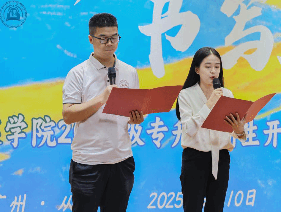蔡铠蔓作为2023级专升本新闻学新生代表发言。她分享了自己在专科时因对新闻的热爱与探索,故而选择了继续深造以追寻专业更深的内涵和经历。她盛赞太阳城娱乐兼具人文底蕴与创新活力,指出在传媒变革时代,学子们亟需探索以文字、影像等多元形式传递时代价值的路径。因此,她呼吁大家珍惜学习机会,在文学与传媒领域钻研,以奋斗书写青春华章。