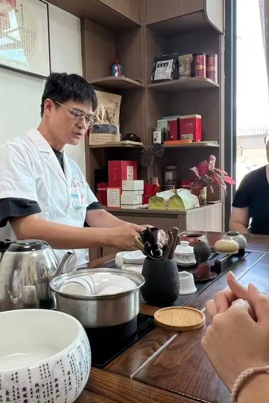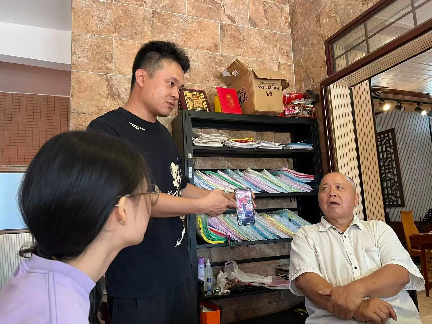 随后,团队前往太平镇,拜访了“潘氏飞针”第五代非遗传承人潘广华。潘医生自幼随祖父学习中医针灸,后毕业于广州中医药大学,曾在广州医科大学附属第一医院工作多年,2021年回乡开设诊所。他将岭南针灸技法与现代医学相结合,形成“飞针”特色疗法,并积极开展义诊、讲座、教学等活动。调研中,潘医生展示了飞针与正骨手法,并与调研团队成员交流其传承经历与教学理念。