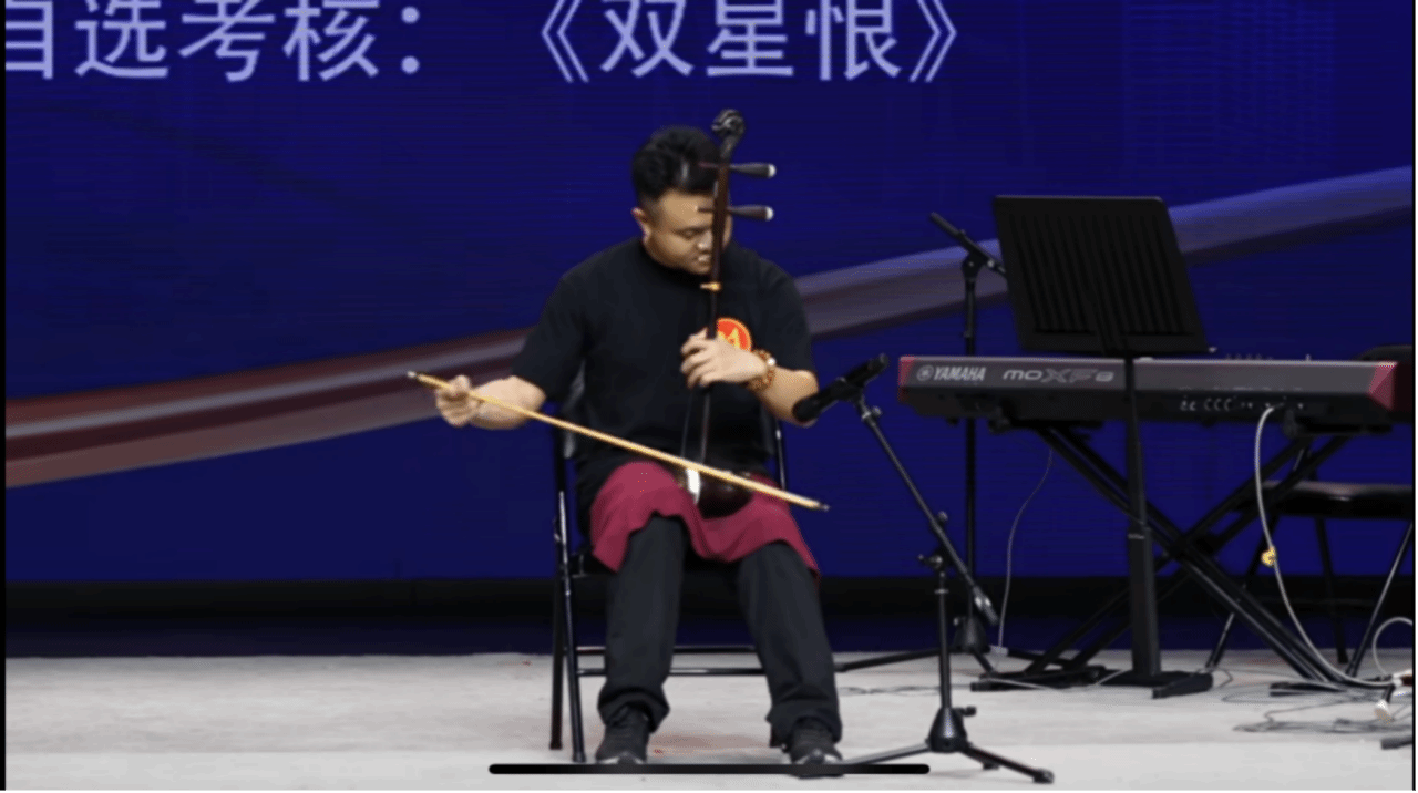 第三站,团队前往街口街,采访粤剧传承人冯锡强。冯师傅现任从化区曲艺家协会会长,自幼受样板戏影响,18岁参军后在部队文艺队系统学习粤剧及高胡演奏。退伍后,他积极参与地方曲艺活动,推动粤剧进校园、进社区,致力于粤剧的传承与普及,还在家自设了一间演播厅,里面设施器具齐全,平时可供给戏曲爱好者来吹开弹唱。冯师傅向调研团队介绍了粤剧在从化的发展现状、唱腔特色及创新尝试,并现场展现了一曲。其忘年弟子、广州粤剧院青年文武生林振樑,正是少年时被冯师傅领进粤剧大门,如今仍常回从化探望恩师。现场,师徒二人一个拉一个唱,高胡声里尽显薪火相传。