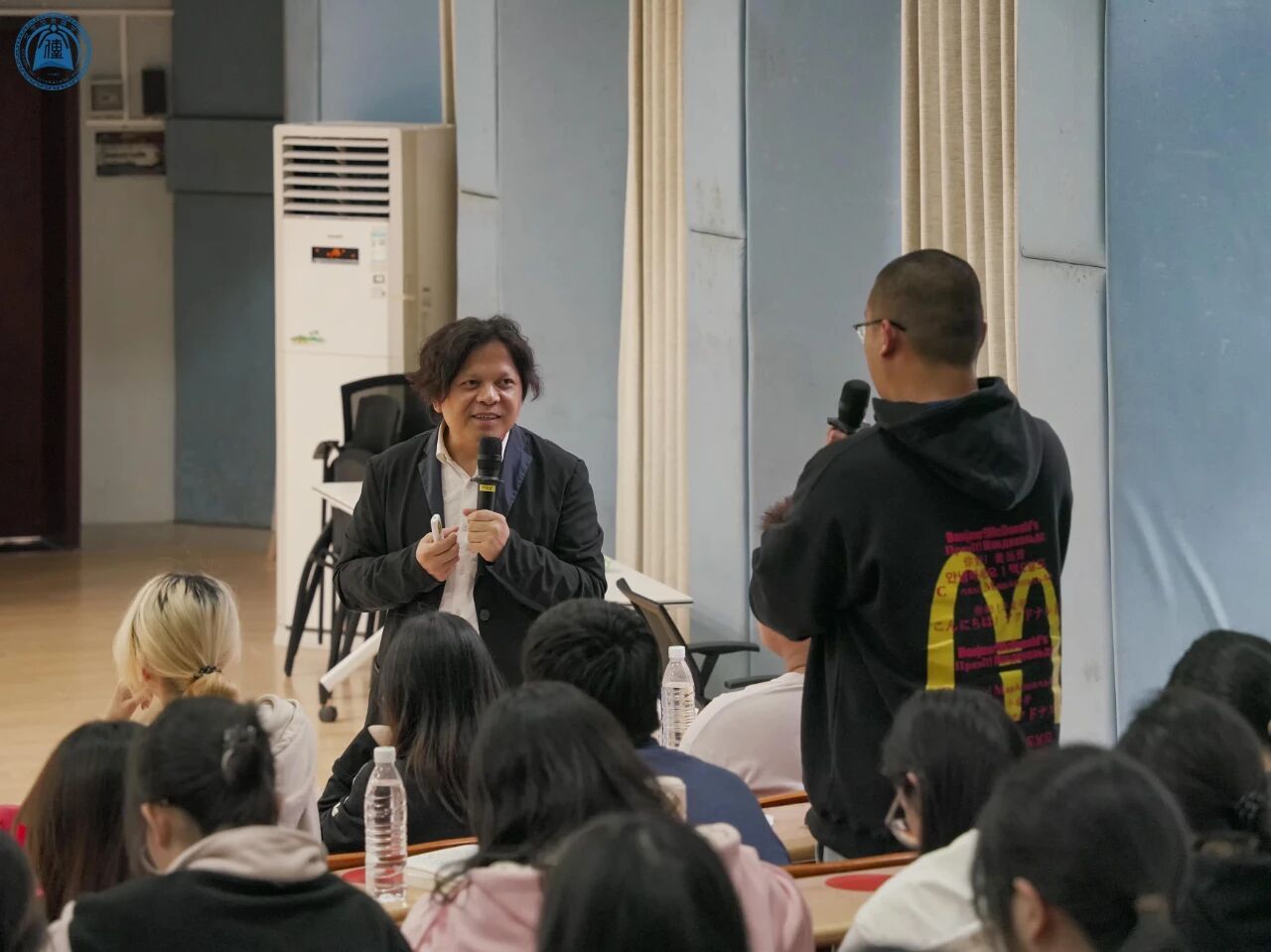 在讲座互动环节,现场同学踊跃提问。有同学问道:“创作诗歌时,是否会有灵感来源于梦境?”黄礼孩老师回应说:“梦往往承载着我们对世界的想象,也与未来追寻的方向紧密相连。”随后的问答环节气氛热烈,将讲座推向高潮,使在场师生对诗歌的独特魅力有了更真切的体悟。