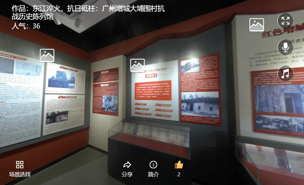 获奖作品《东江淬火,抗日砥柱——广州增城大埔围村抗战历史陈列馆》聚焦广州增城大埔围村抗战历史,以全景VR技术重现抗战时期东江纵队的英勇事迹。本作品是基于大埔围抗战爱国主义基地实景打造的沉浸式数字展示成果,旨在突破物理空间限制,让红色历史文化实现 “线上可看、沉浸式可感”。该作品不仅是对大埔围抗战基地物理空间的数字化复刻,更通过技术手段让红色历史 “活” 起来 —— 既为无法实地到访的人群提供了了解抗战历史的新途径,也为大学红色教育、文化遗产数字化传播提供了可复用的实践案例,助力抗战精神在数字时代的传承与弘扬。