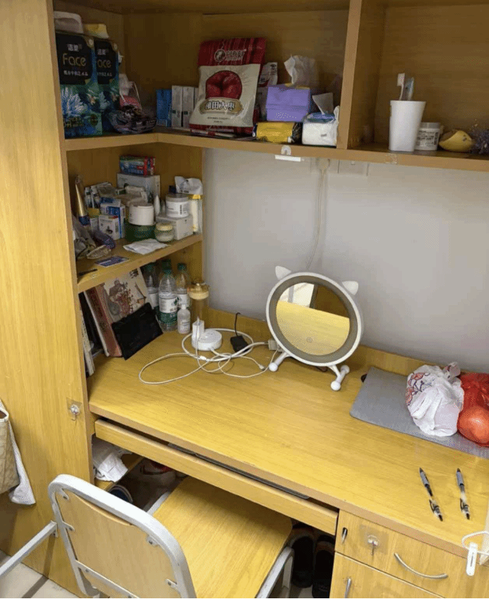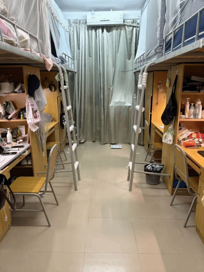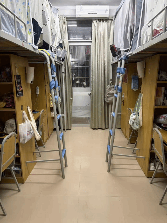 宿舍不大,却藏着青春的热烈。4张书桌并肩而立,承载着我们的学习与热爱;温馨床铺,安放疲惫与梦乡。室友和睦相处,作息规律,营造出安静舒适的氛围。这里是我们在校的小家,见证着彼此的成长与蜕变,简单却满是归属感。