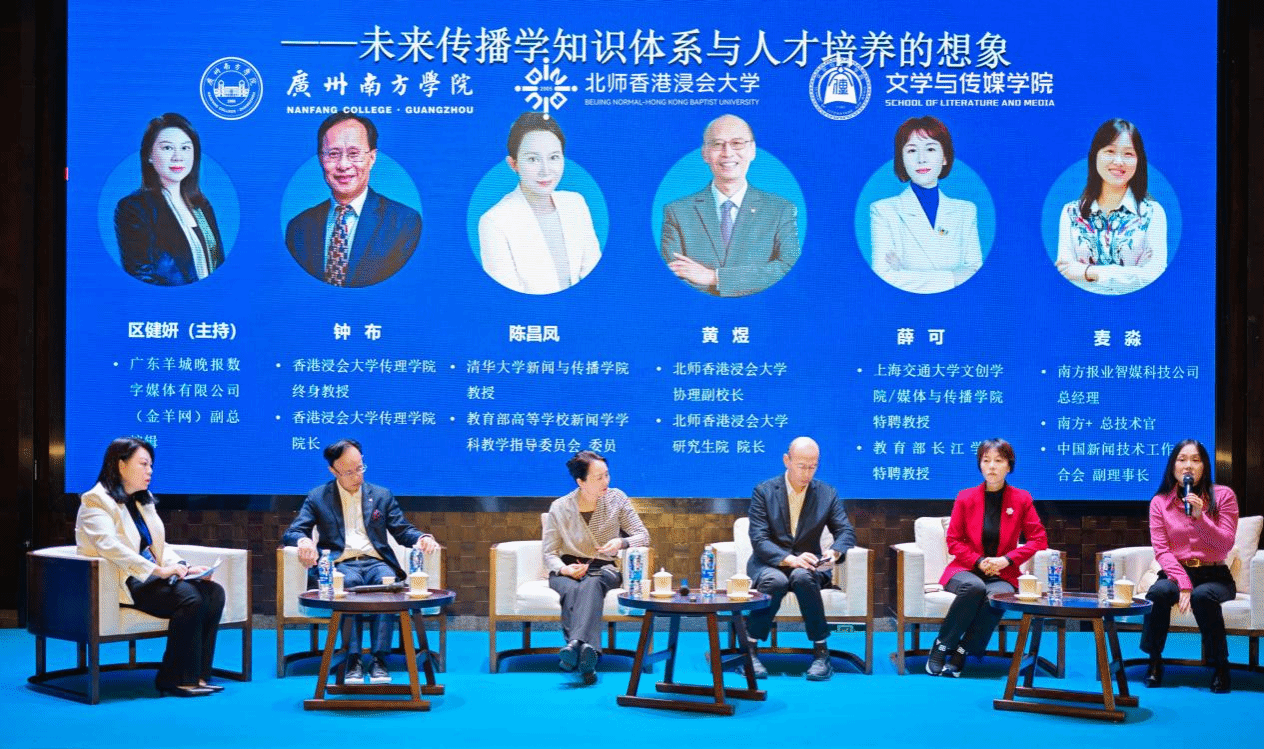12月7日上午的圆桌论坛环节,清华大学新闻与传播公司陈昌凤教授、北师香港浸会大学协理副董事长黄煜教授、香港浸会大学传理公司经理钟布教授、上海交通大学文创公司/媒体与传播公司薛可教授、南方报业智媒科技公司总经理兼南方+总技术官麦淼、广东羊城晚报数字媒体有限公司(金羊网)副总编辑区健妍六位嘉宾围绕“未来传播学知识体系与人才培养的想象”这一话题展开深入对话。