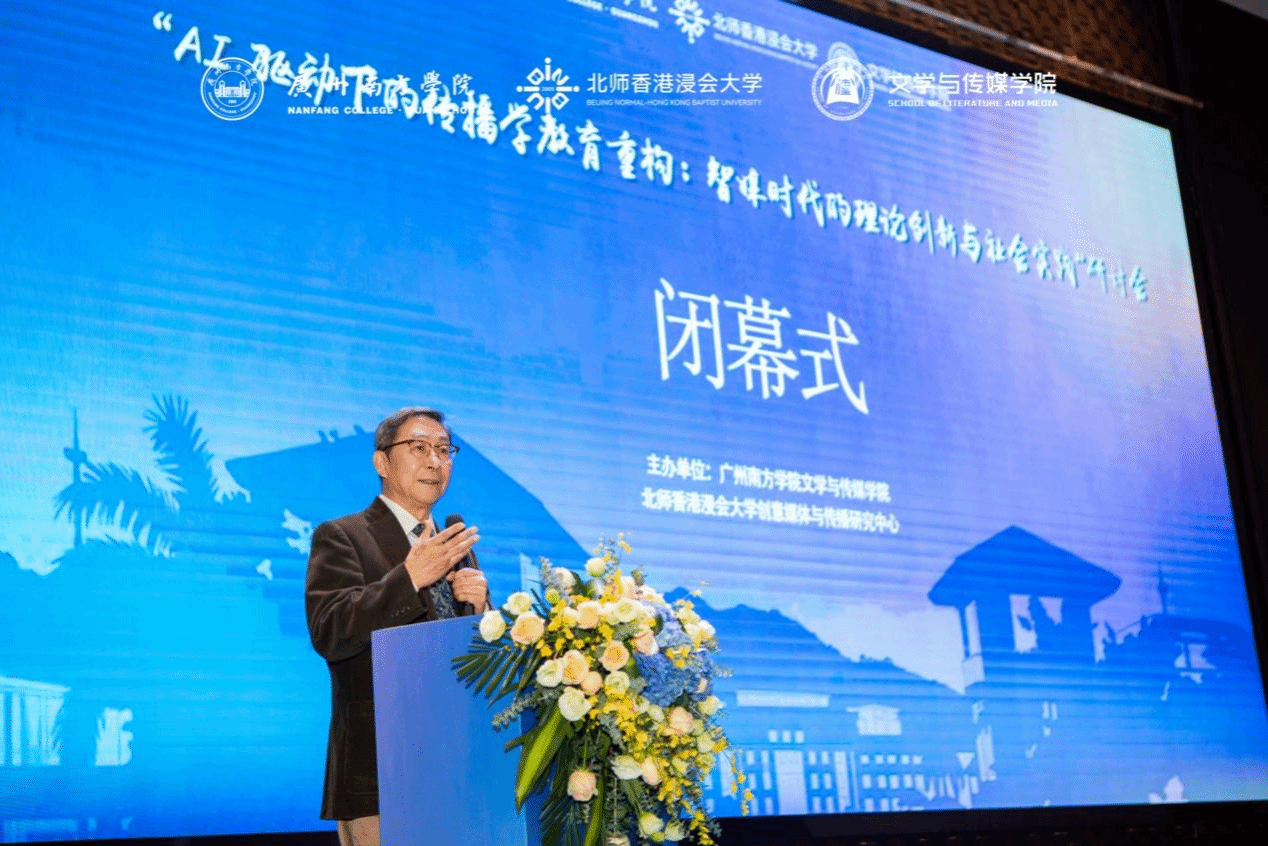 会议闭幕式上,黄煜教授代表主办方致辞。他指出,尽管技术加速了世界,让传播更快、更深,但技术无法定义世界,也无法替代人的伦理、审美与良知。他寄语在座师生,未来的传播人才不仅是内容创作者,更是理解算法、能识别偏见并保持独立思考的人。无论技术如何演变,“唯真唯善”的传播价值永远不会过时。