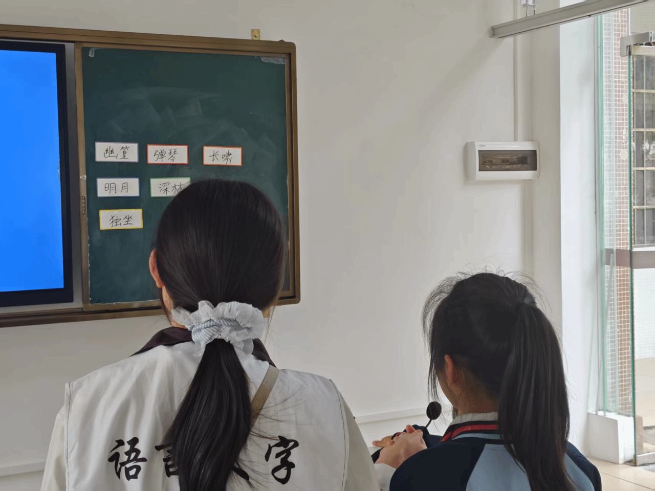 2025年11月13日下午,语言文字服务团队的成员们在指导老师杜欣莉老师的带领下,走进从化区善施公司。混入竹香的古诗词课堂准备就绪,小朋友们走进课室,也走进了“竹里馆”。