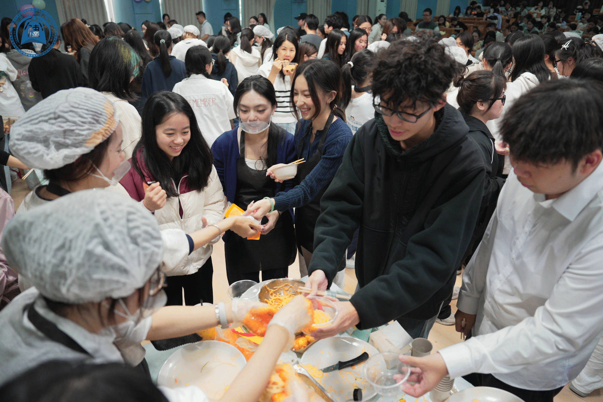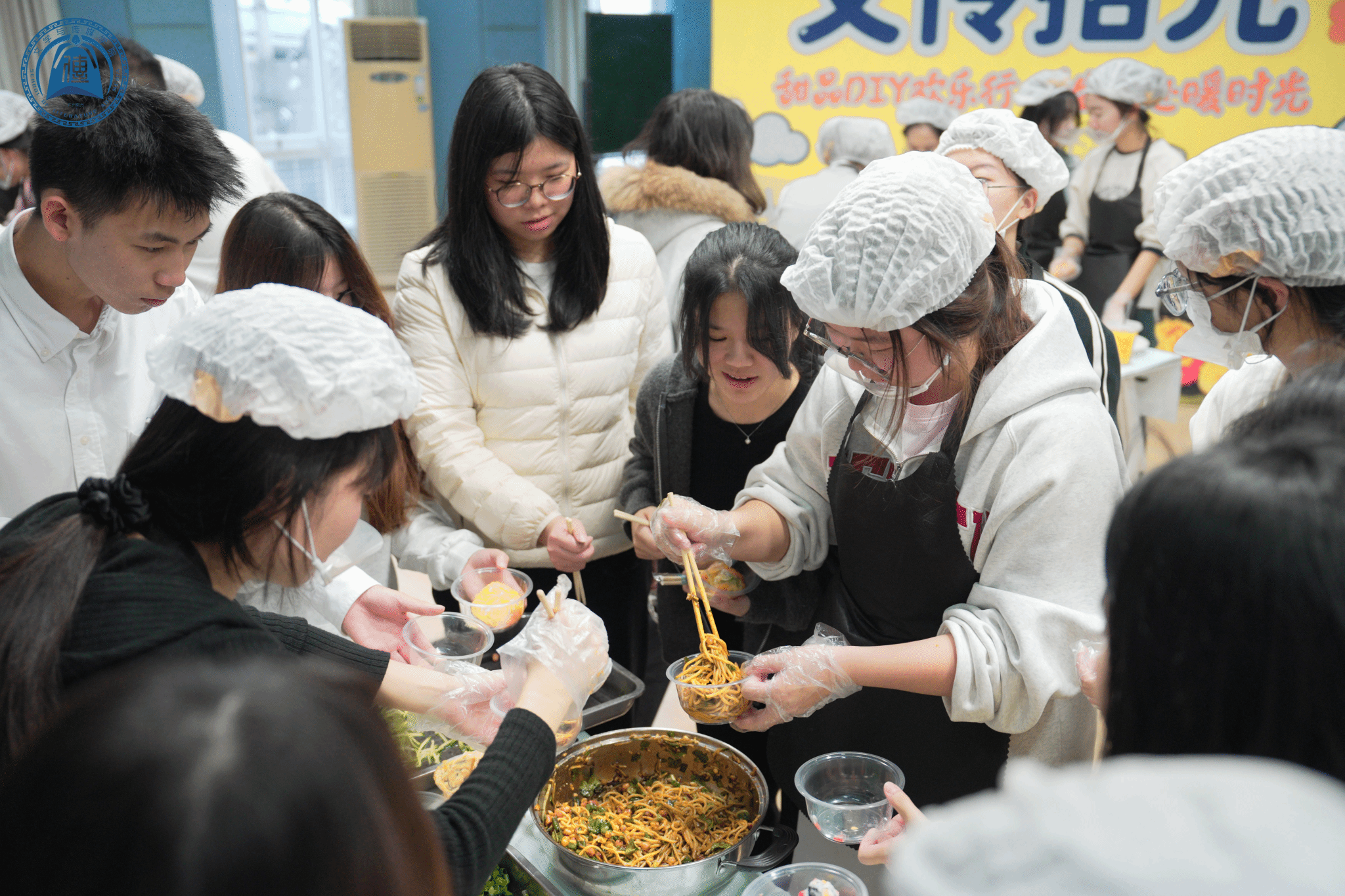 为了让更多同学感受到活动的温暖,现场还随机抽取了七位幸运观众,他们可以免费品尝任意一款美食,在冬日里收获了来自团委员工会的专属惊喜。其余观众也有序领取餐具,穿梭于各个手作区,随心挑选心仪的美食,尽情大快朵颐。
