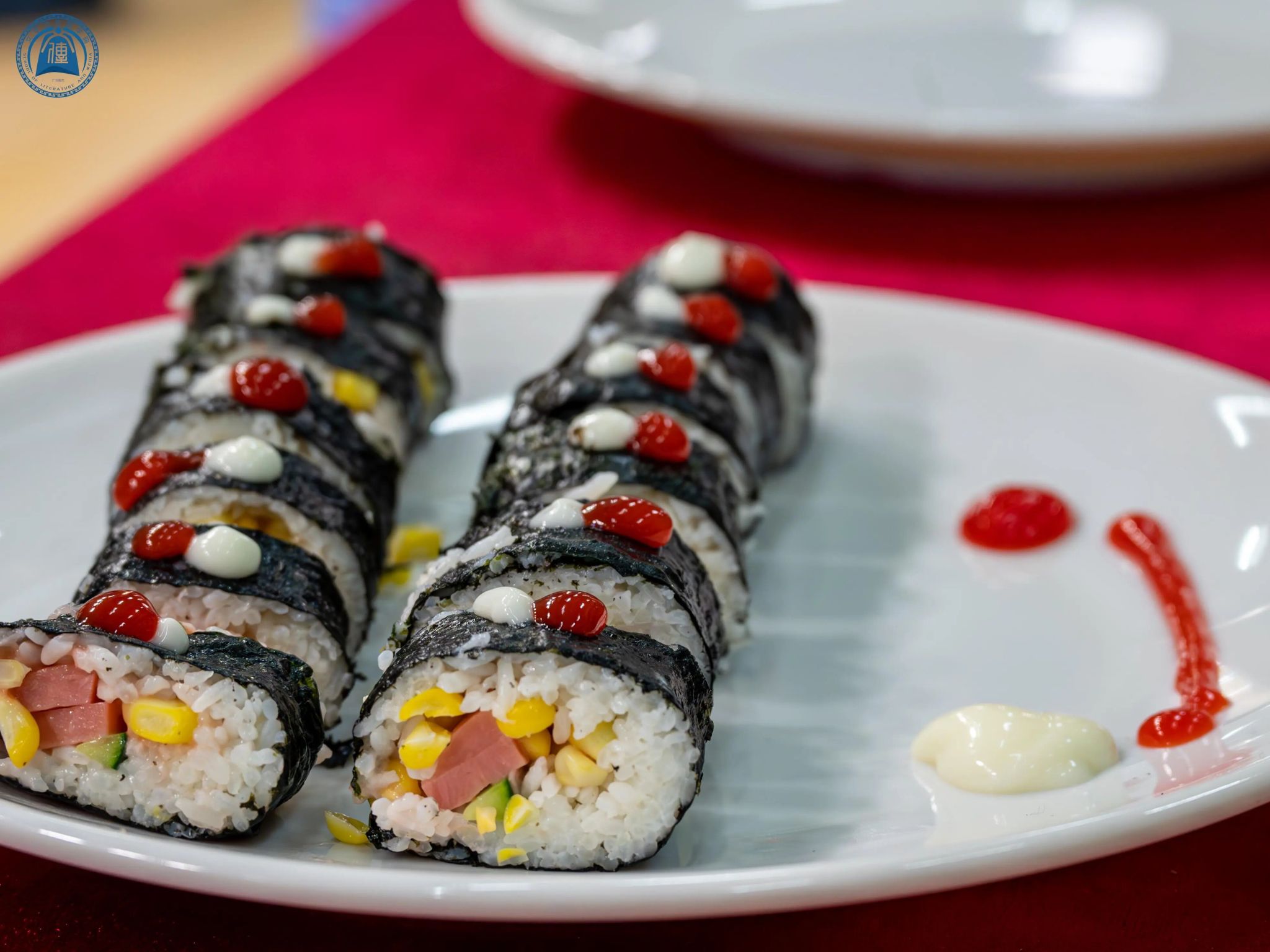 随着致辞结束,美食节正式拉开帷幕。主持人向全场师生隆重介绍了本次活动精心设置的六大手作区 —— 特调饮品、春卷、凉面、雪媚娘、肉松小贝、寿司。各手作区的指导老师带领员工团队依次登场,响亮喊出专属口号,生动讲解特色配料与制作工艺,引得台下阵阵掌声。