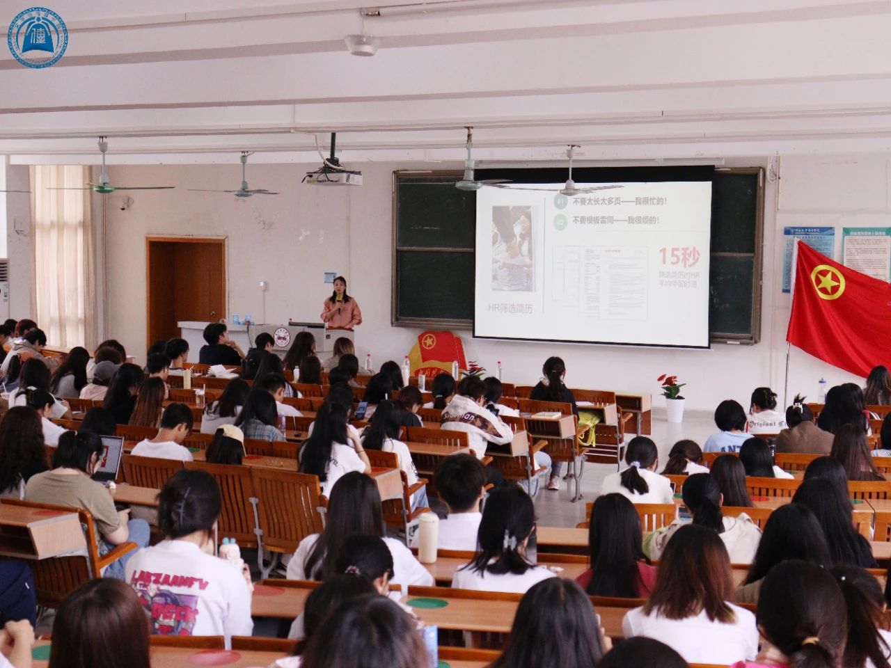 原月老师凭借教学经验和对当前市场需求的深刻理解,从HR的角度出发,为在场员工提供了一场内容丰富、实用性强的讲座。她首先介绍了同学们大学毕业后的几条路径选择,她建议大家尽早明确未来的目标,可以通过相关的招聘平台提前了解相关工作岗位的要求,提前规划校园生活,磨砺本领,积累经验。