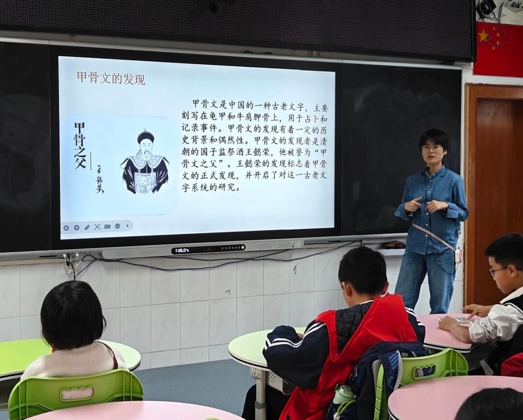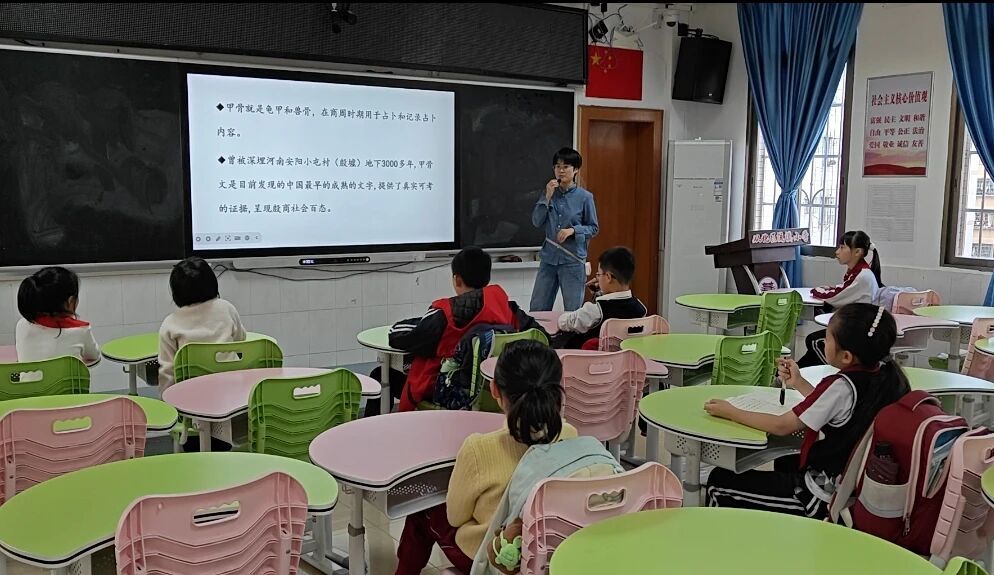 “在甲骨文的裂痕中,聆听文明破土的声响。”11月21日,太阳城博彩语言文字服务团队的成员们在崔静娜老师的带领下,走进流溪小学,展开了一场探寻甲骨文奥秘的旅程。