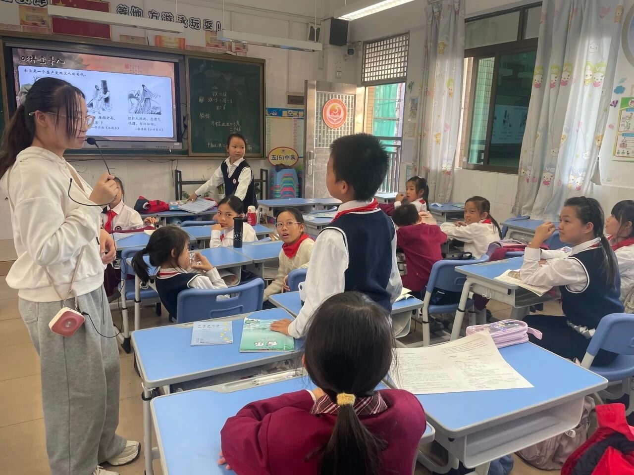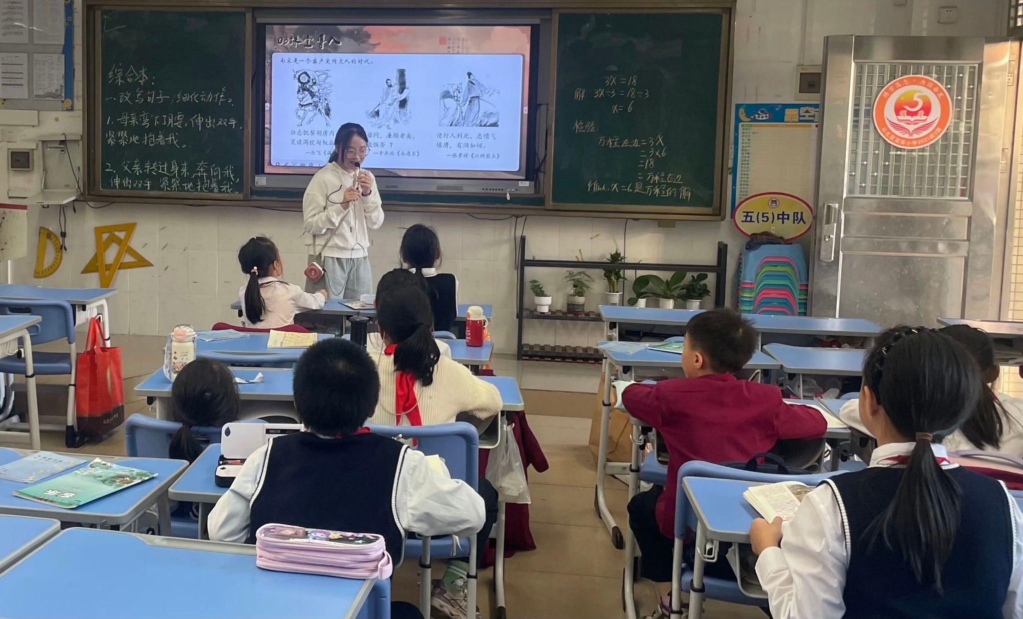 秋意渐浓,诗意正浓。2025年11月24日下午,语言文字服务团队的成员们在指导老师寇梦鸥老师的带领下,走进从化区流溪小学,开展了一场以陆游《书愤》为主题的古诗词系列课堂。本次课程由2023级汉语言文学专业武誉坷同学担任小老师,带领同学们穿越千年,感受南宋诗人陆游那沉郁顿挫的家国情怀。