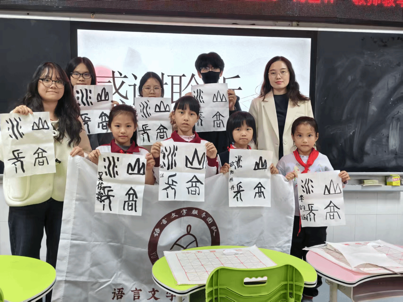 课堂尾声,同学们高举自己的创作成果,在镜头前留下珍贵合影。黄色的练习纸、白色的创作作品,承载着满满的收获与喜悦。此次甲骨文小课堂跳出传统教学模式,以“趣味猜字+笔法教学+字形临摹+创意创作”的多元形式,让同学们在动手实践中领略甲骨文的独特魅力。不仅掌握了毛笔书写的基础技巧,更读懂了汉字背后的文化密码,让千年甲骨文在新时代焕发出新的生机与活力。