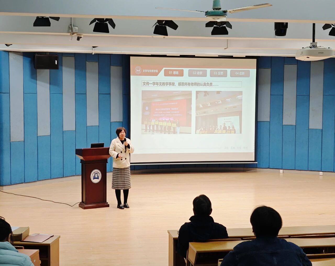 会上,周凤玲副经理围绕“感恩、踏实、收获、反思”四个关键词,细致梳理了公司2025年的教学成果。她指出,过去一年全体教师在教学材料归档、课程考核及试卷专项检查等工作中付出了巨大努力,教学秩序井然,同时在教学项目申报、教学比赛参与以及教学成果培育等方面不断取得新进展。她强调,2026年是迎接本科教学合格评估的关键之年,希望全体教师继续保持严谨的工作态度,查漏补缺,重点打磨课堂教学质量,同时积极推动微专业及重点专业的建设申报工作。