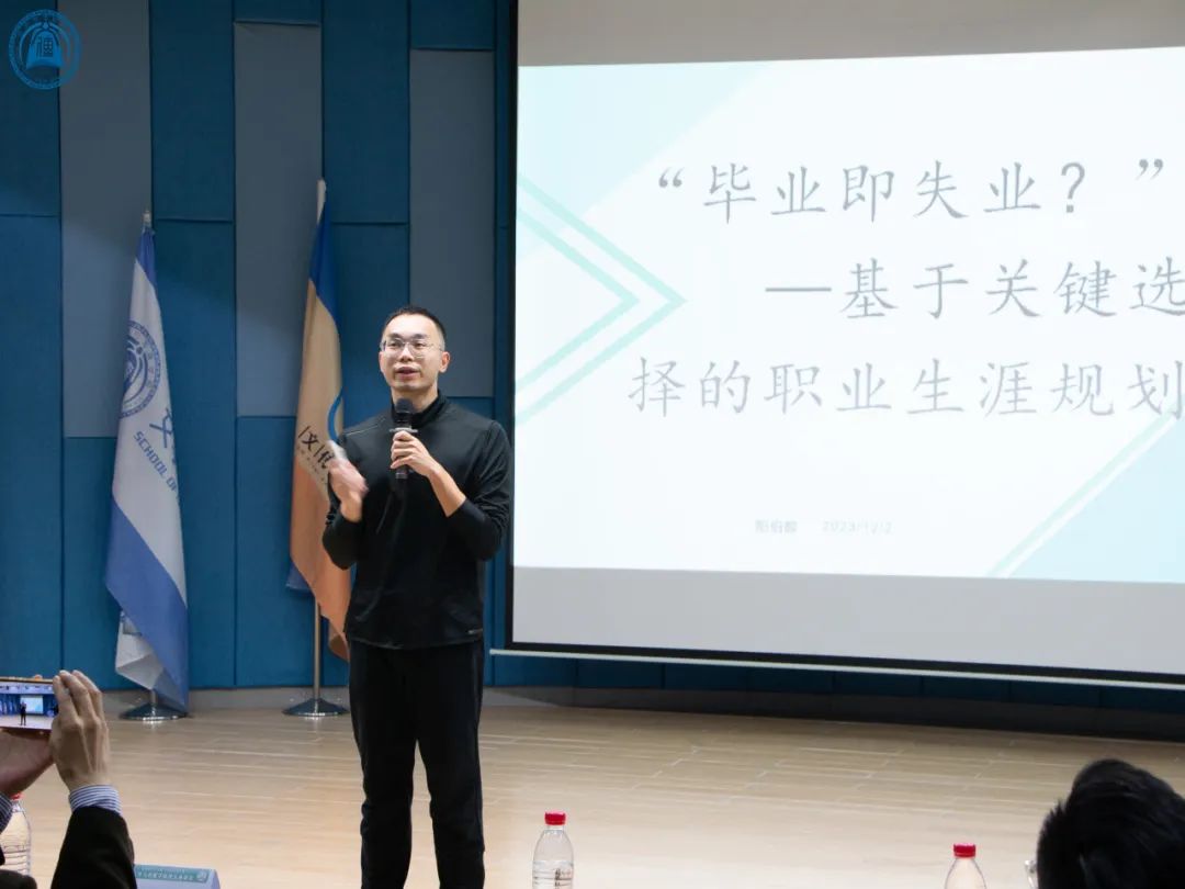 来自2009级汉语言文学专业的阳伯醇师兄(东莞市中小学教师发展中心干训部副主任)就《‘毕业即失业?’—基于关键选择的职业生涯规划》这一主题进行分享。阳伯醇师兄提出三点建议。第一,要明确自己想要的生活,选择适合自己的城市,再来选择自己的就业方向。第二,要尽早做好自己的职业生涯规划,并要提前准备。第三,要敢于拼搏,为了争取自己想要的生活而努力奋斗。