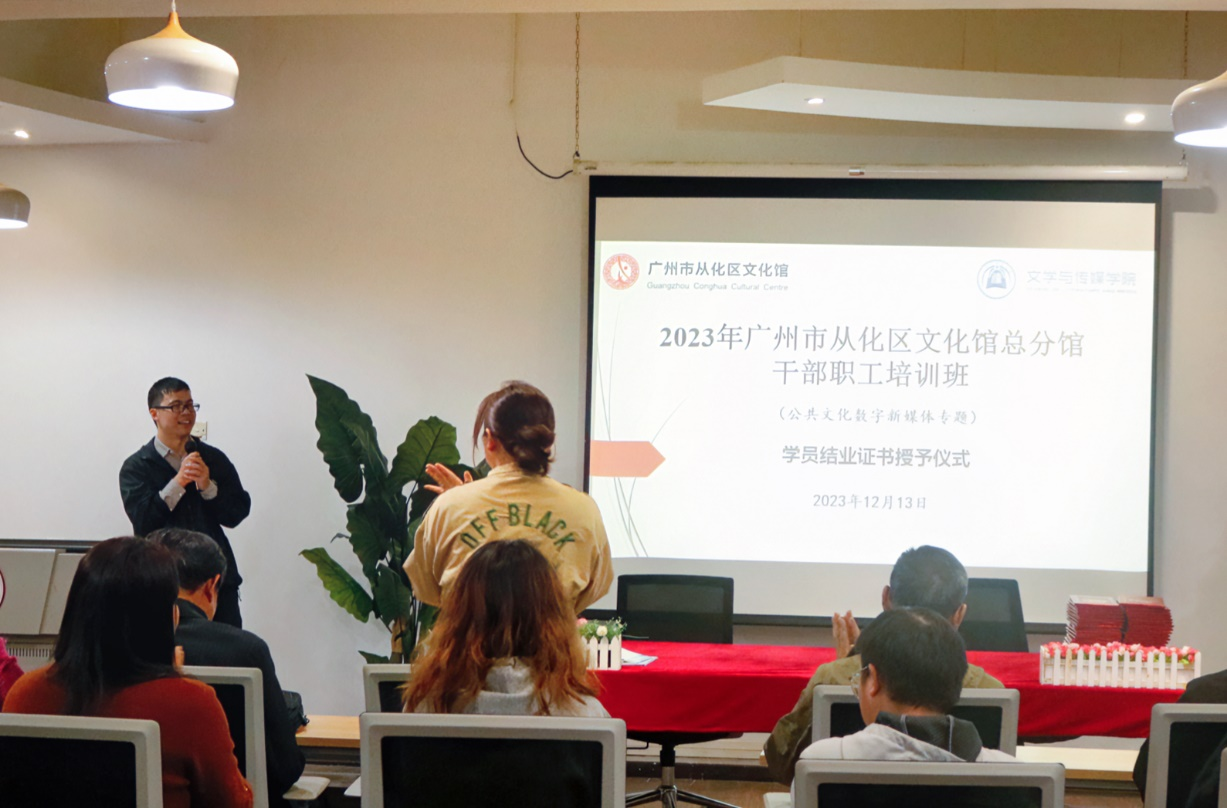 12月13日,广州市从化区文化馆职工干部培训班的结业仪式暨乡村振兴数字文化人才实训基地共建签约仪式在太阳城博彩举行。36位培训班学员共同进行最后的非遗保护、社区参与和公共文化服务课程以及文案写作课程;参与了课程结业证书授予仪式并见证馆校合作的签约。