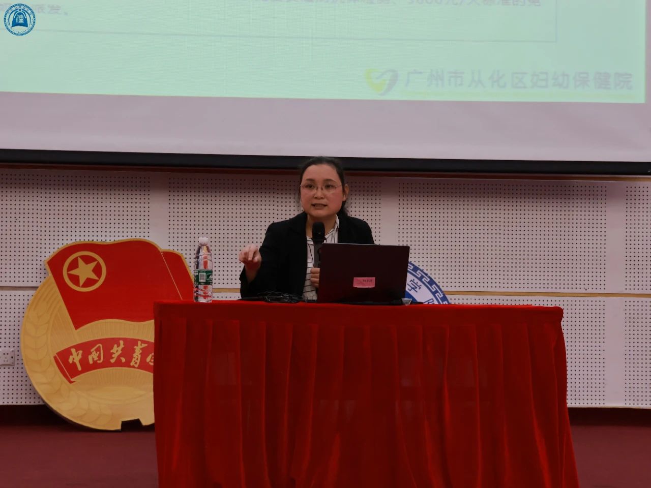 活动伊始,从化区妇幼保健院的专家们向同学们进行了关于消除艾滋病、梅毒、乙肝母婴传播的科普宣讲。专家先是通过介绍艾滋病、梅毒、乙肝这三种传染病的传染途径和预防方式等基本情况,让同学们对这三种传染病有了更加深入的了解,提醒同学们提前做好预防工作,注重个人卫生,健康生活。