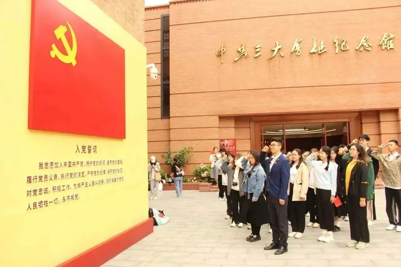 当天上午,同志们抵达参观学习的第一站——中共三大会址纪念馆。中共三大会址纪念馆共两层,从“上下求索”“凝聚共识”“风起云涌”“理想之光”等四个篇章全方位、全过程、全景式展现了中共三大波澜壮阔的辉煌历史,较为完整地保留了会议的文物、档案等历史印记,是同志们参观学习,了解这段峥嵘岁月的不二之选。在纪念馆门口,方亚东书记带领支部同志们握紧右拳举起右臂,庄严诵读入党誓词,激励同志们不忘初心,奋斗终身。