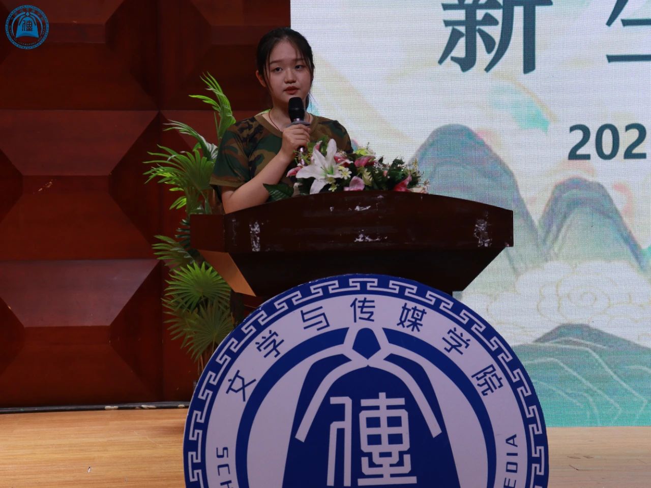2023级网络与新媒体专业新生代表田雨灵讲到,学习是不断的发现自我、挑战自我、成就自我的过程,要有放飞梦想的决心和追逐理想的勇气。此外,她还衷心的祝愿大家能够在大学期间中寻找到属于自己的人生价值,也可以明确心中的理想与目标,留下属于自己的美好回忆。