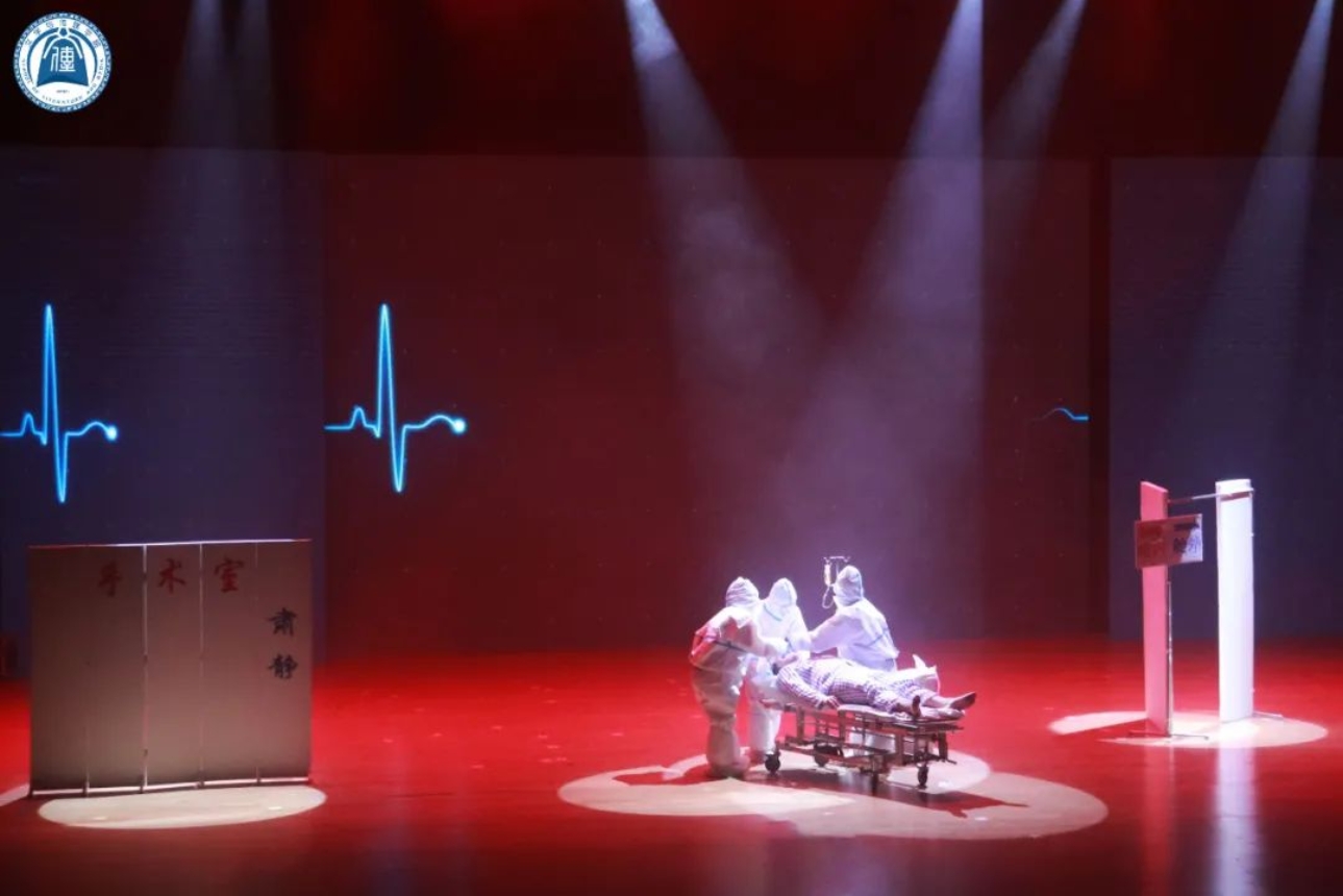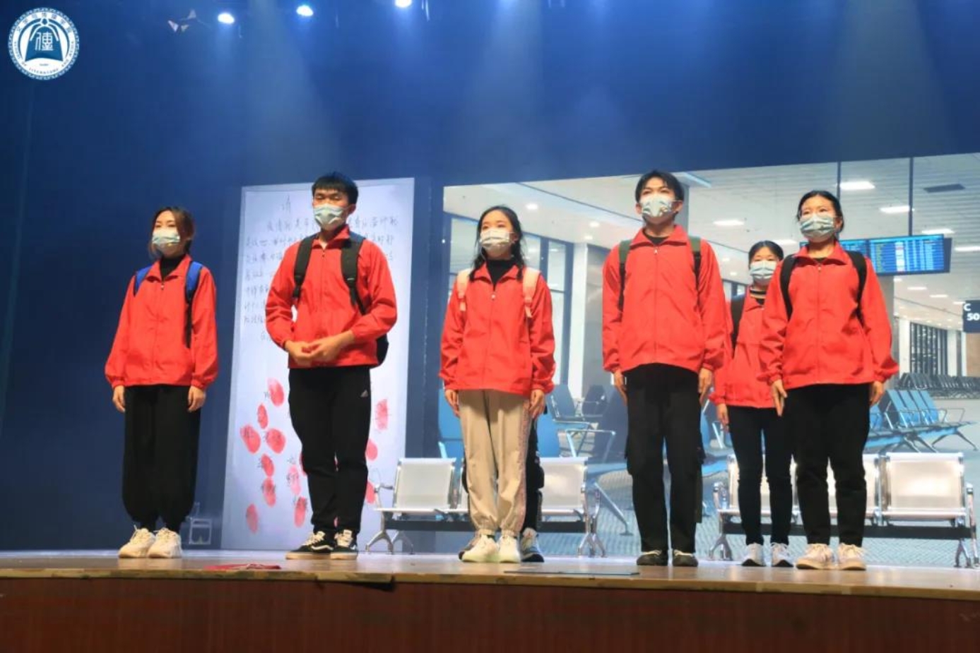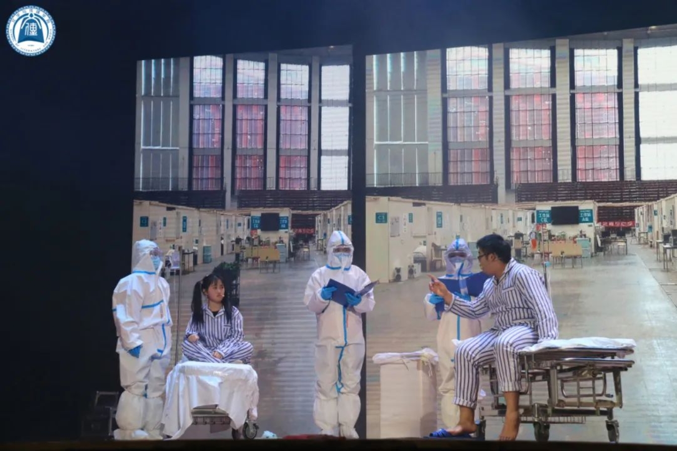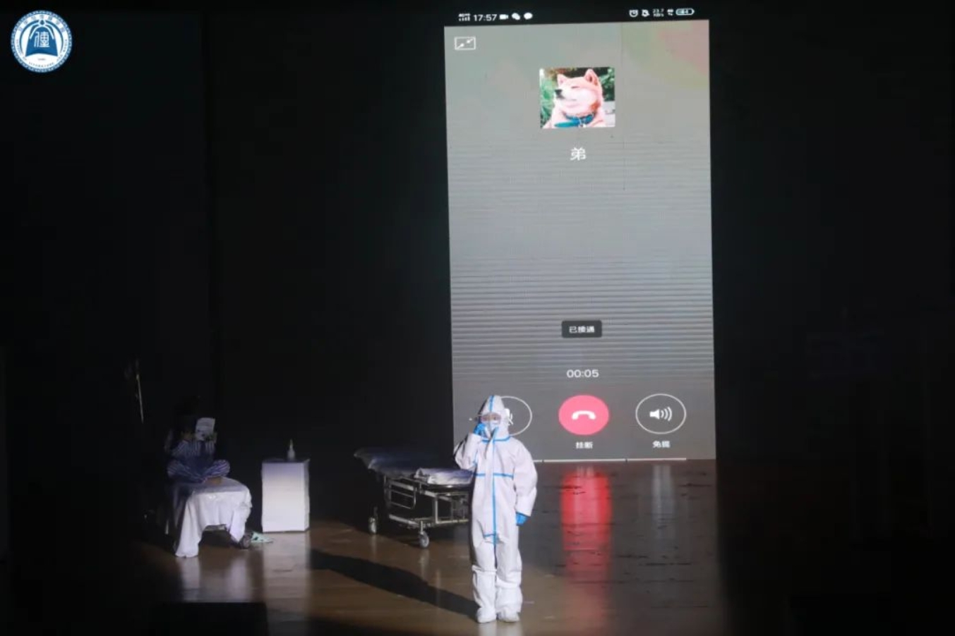 庚子年初,疫情肆虐,无数的平凡人为家国勇敢奔赴一线抗疫。本次文传实践课程展演舞台剧《破晓》以2020年初突然爆发的疫情为材,以姐姐林珍为主线角色,用弟弟林旭的视角,向众人讲述姐姐和其他勇者“冲云破雾,终迎破晓”的故事,并在其中完美串联了歌曲、舞蹈、朗诵、戏剧等元素。展演分为日始、日暮、定昏、子夜、黎明、破晓六个部分,以喜—悲—喜为主要的感情基调。
