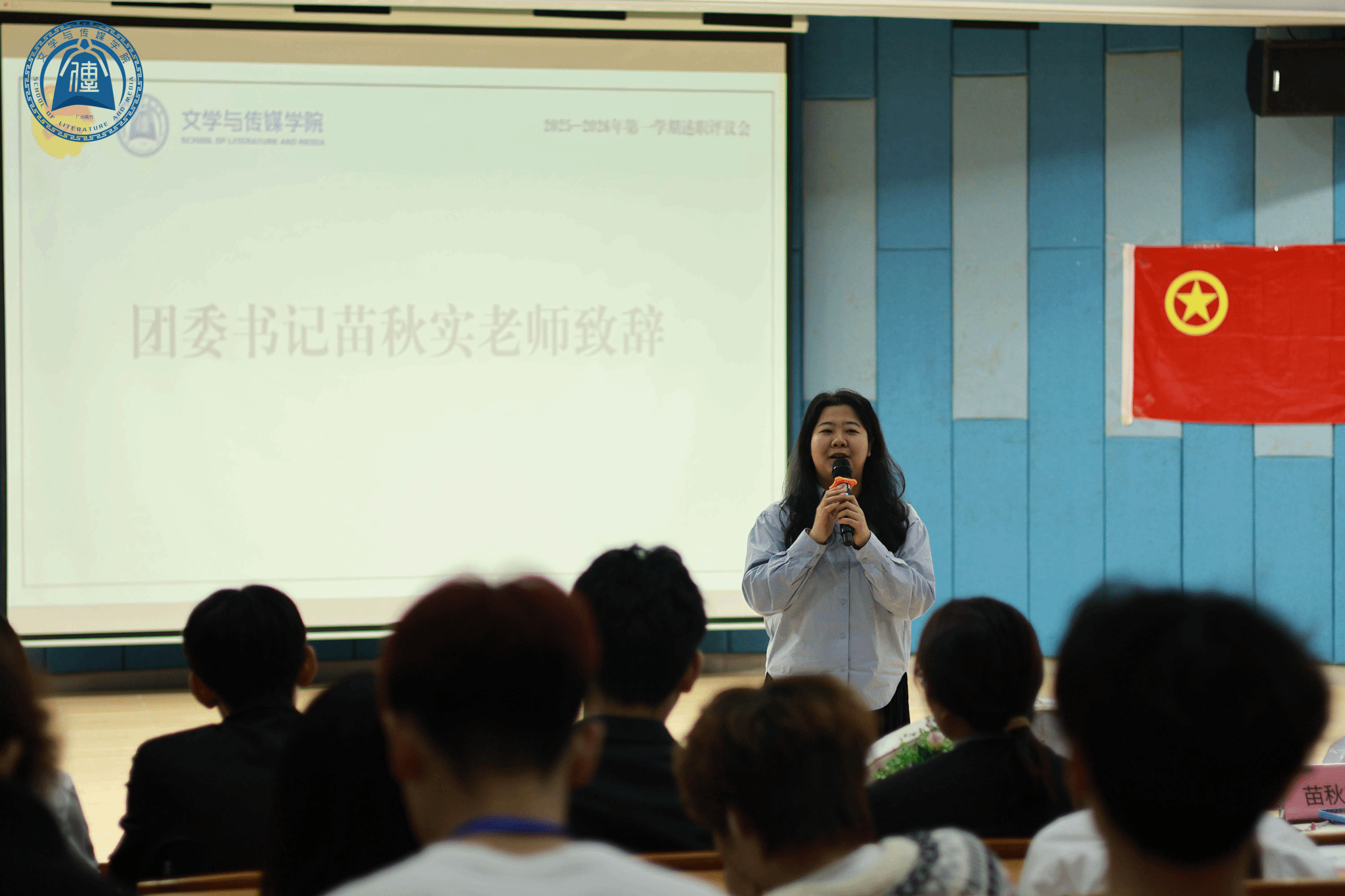 最后,团委书记苗秋实老师上台致辞,她首先向本次述职大会的相关负责人致以真挚感谢,同时对于文传学子所展现出的饱满生活热情、丰富的文艺气息和想象力予以高度赞赏,在介绍了其他几位指导老师的信息后,苗老师表达了自己对团委员工会发展所寄予的殷切期许,她希望全体团学成员能够坚守初心,永葆工作热情,以实际行动助力每一次团学活动的成功举办,为团学发展注入个人的青春力量。满丽老师和覃韵萍老师也相继发言,既表达了对于团学发展的十足信心,也寄予了深切厚望,并为团学的未来发展送上美好祝愿。
