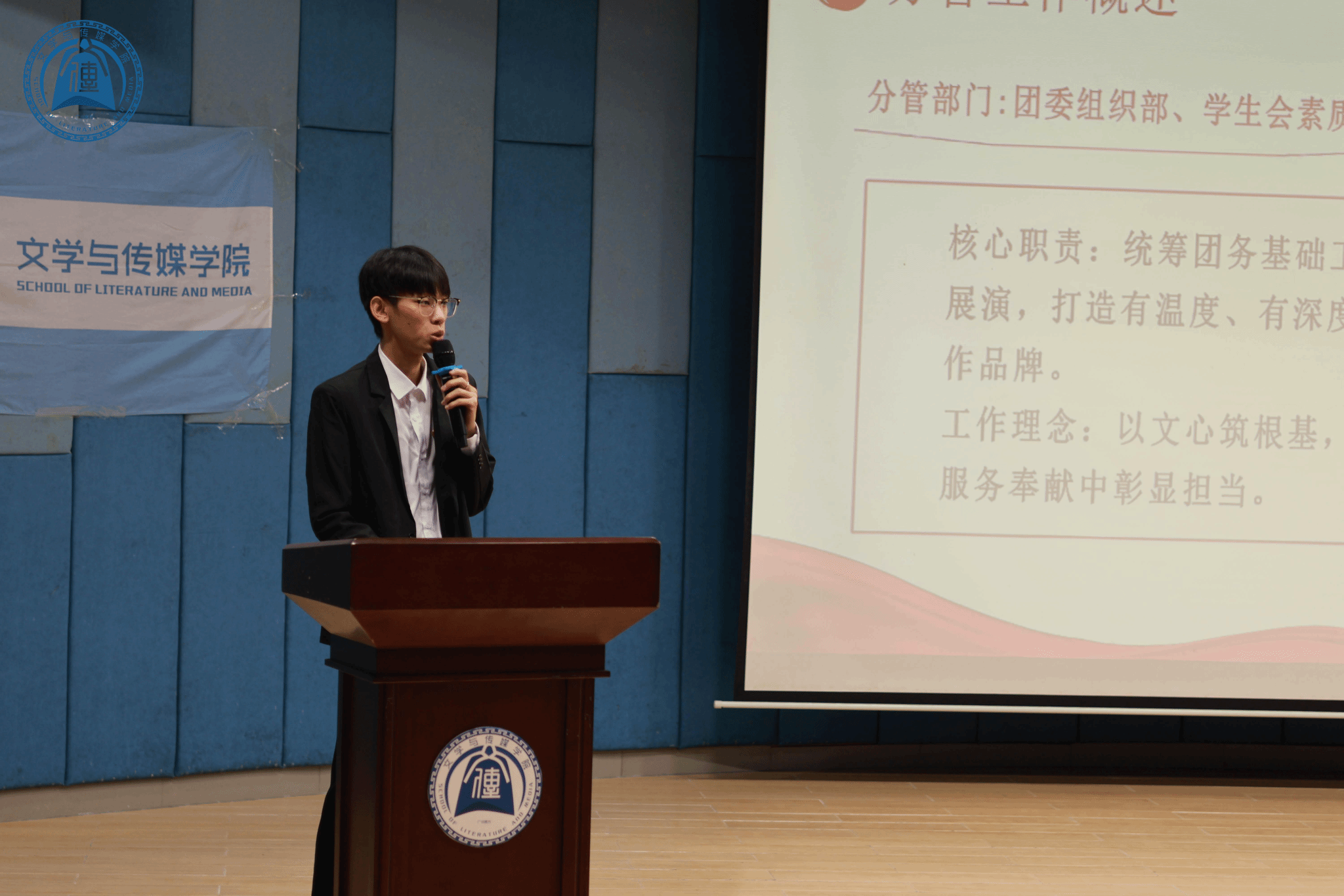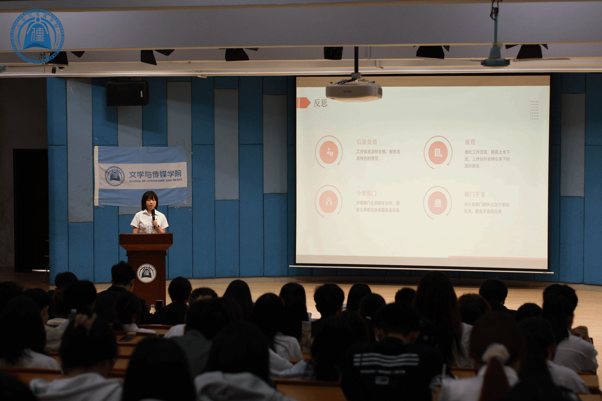 各主席团成员立足分管部门的工作实际,对上学期的工作开展情况进行了细致严谨的总结与深刻反思,全面展现了学期工作成效。在他们的统筹带领下,文传公司成功举办了“诗韵风华”大型展演活动,职业规划大赛、校史知识竞赛等大型比赛,宿舍走访,教学楼安全检查等日常工作也有序落地,各部门职责分明,运转高效,团学工作呈现欣欣向荣的良好发展态势。同时,他们直面工作中存在的不足,深刻剖析了沟通繁杂,跨部门合作困难等问题,明确了整改方向,对下学期团学工作的开展做出了系统严谨的规划和部署。